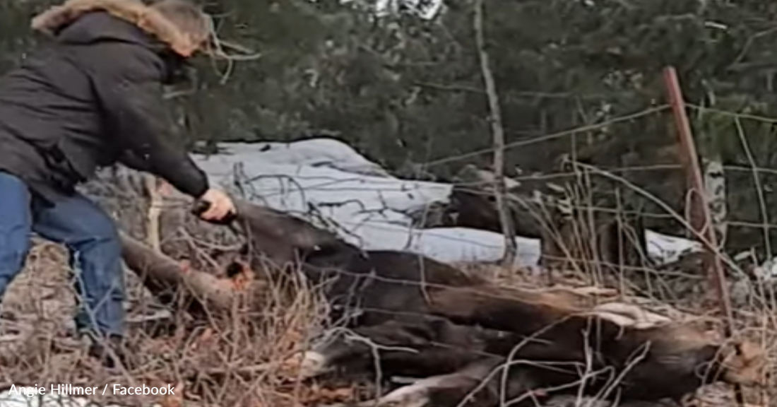 Couple Stops To Save Moose Trapped In A Wire Fence