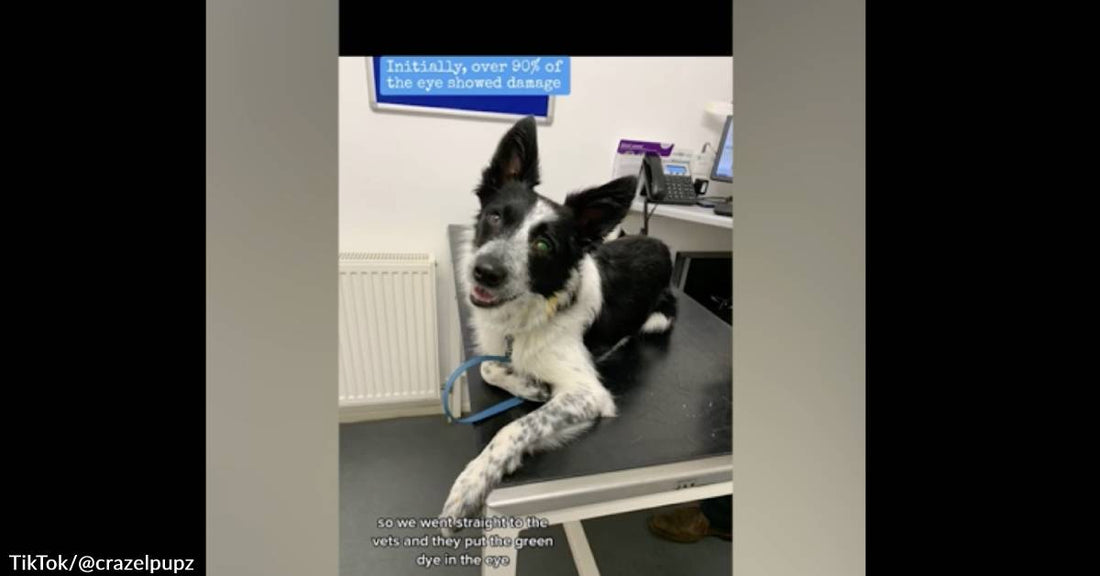 Once they were at the veterinarian's office, Willow was given three types of eye drops and painkillers to treat the injury. Unfortunately, the damage covered more than 90 percent of the eye, leaving everyone involved worried that Willow might lose her sight entirely in that eye. At one point, they used green dye to determine the extent of the injury and healing.