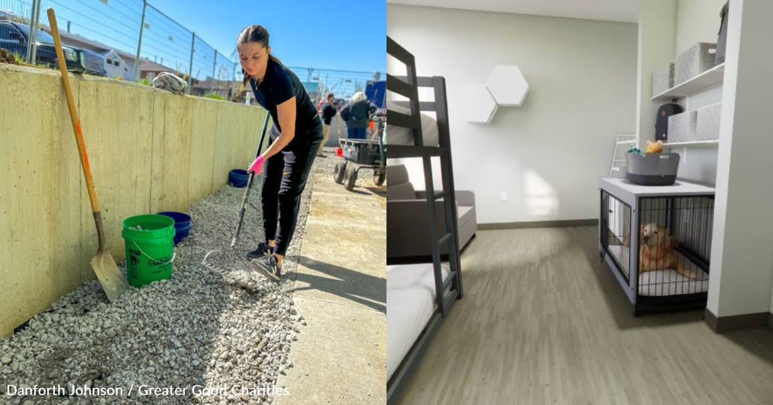 In August, we teamed up with Greater Good Charities on a rebuild at the Domestic Violence Intervention Program in Iowa City, Iowa. The organization provides comprehensive support to survivors and their loved ones in eight counties across the state. Among their offerings is a new pet program, which we helped them put into place to allow survivors the peace of mind in knowing their pets will also be safe when they seek shelter.