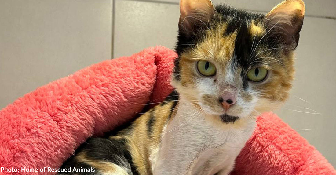 The young feline was involved in an accident that would have resulted in her death, but thankfully, a kind man spotted her and brought her to Home of Rescued Animals for help.
