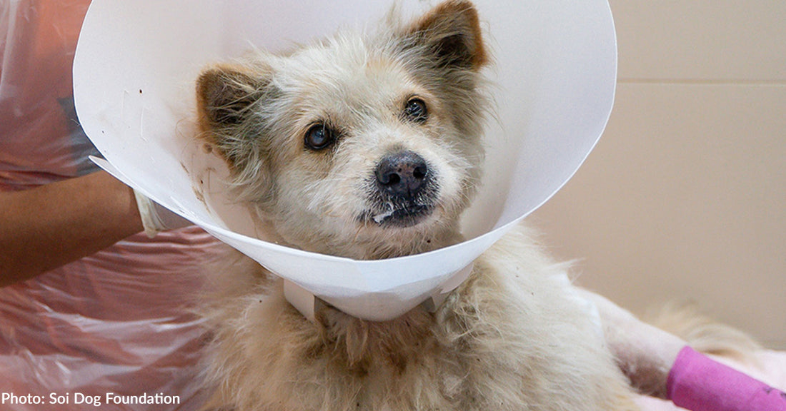 Soi Dog Foundation rushed her to an animal hospital who discovered she was also anemic and suffering from an open fracture on her left hind leg.