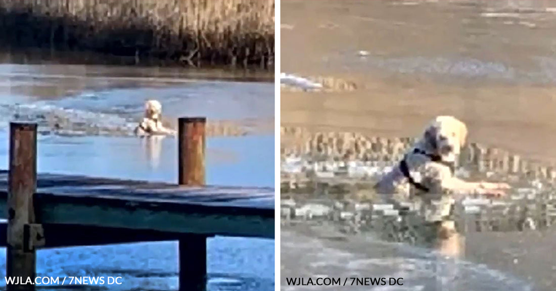 In spite of the cold winter weather of December and the mixed emotions of seeing the family dog crying and whining in the middle of the icy cold pond, one brave dad didn’t even hesitate to jump in to save his dog.