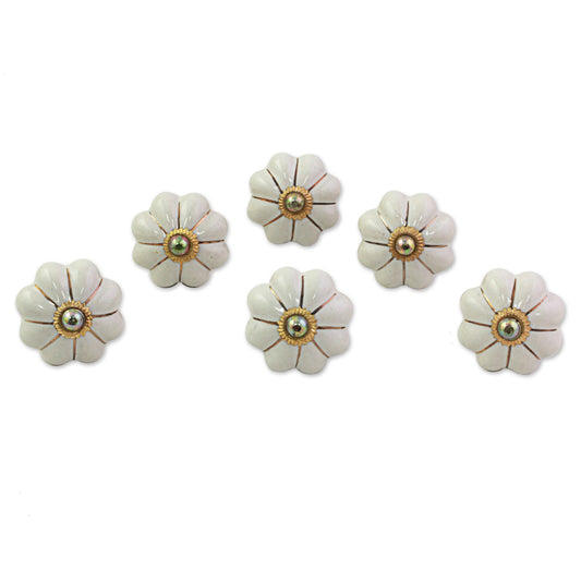 Pale Floral Beauties Ceramic Cabinet Knobs Floral Off-White (Set of 6) India