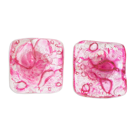 Peaceful Life in Pink Recycled CD Dangle Earrings in Pink from Guatemala