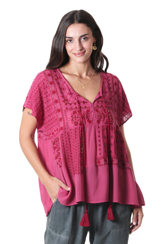 Sunset in Lima Pale Melon Orange Embroidered Cotton Tunic Top from Peru