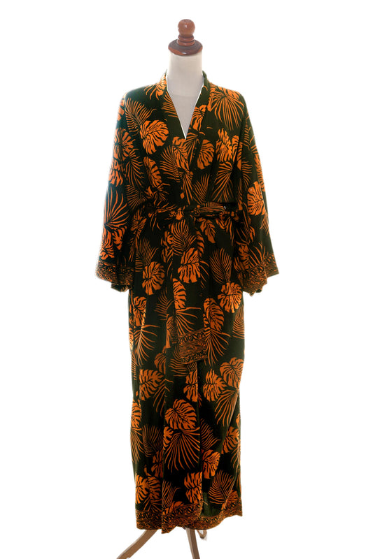 Tropical Leaves Handmade Batik Printed Rayon Robe