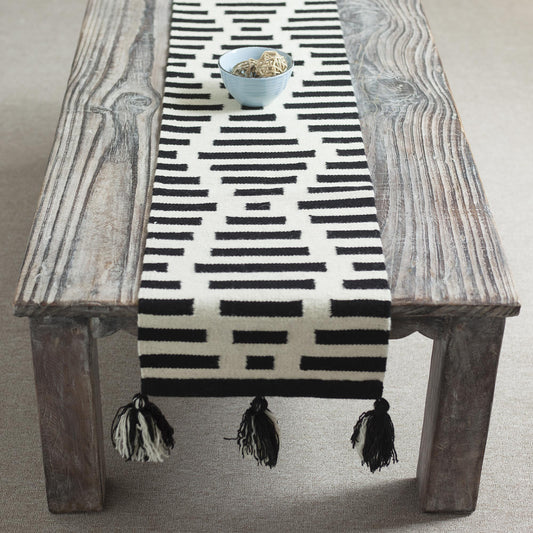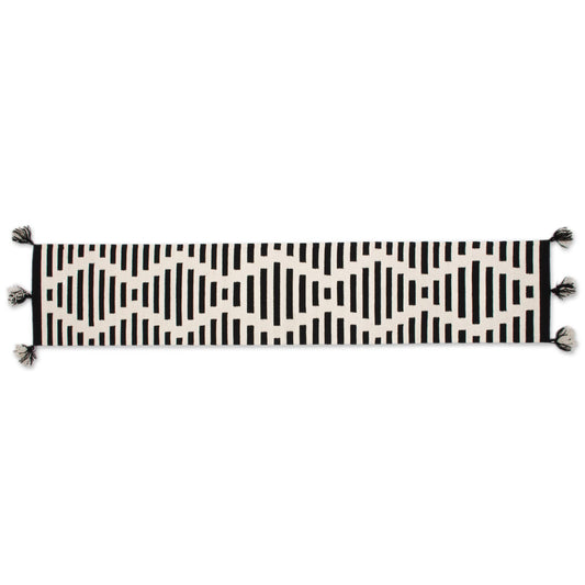 Diamond Illusion Diamond Motif Wool Table Runner in Black and Antique White