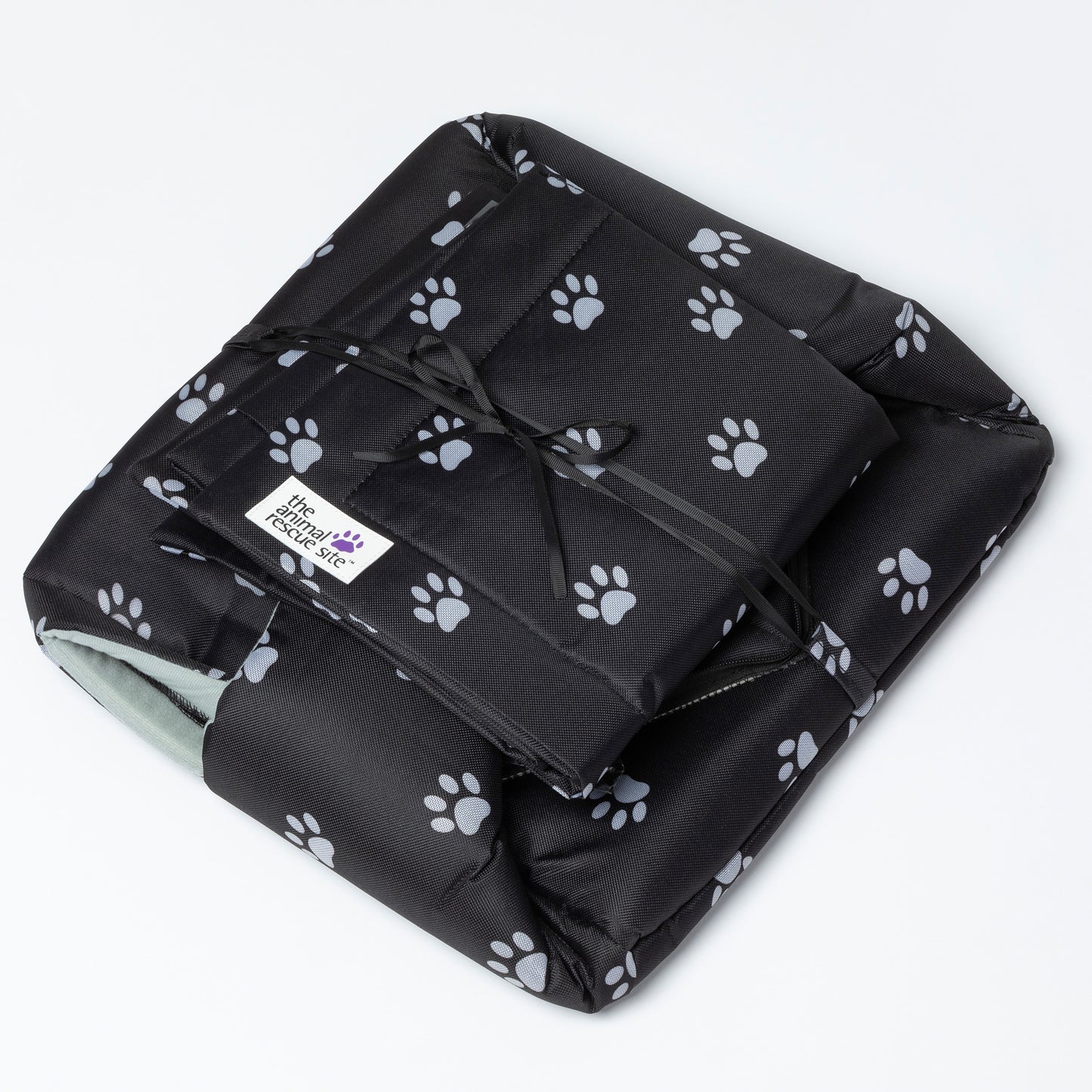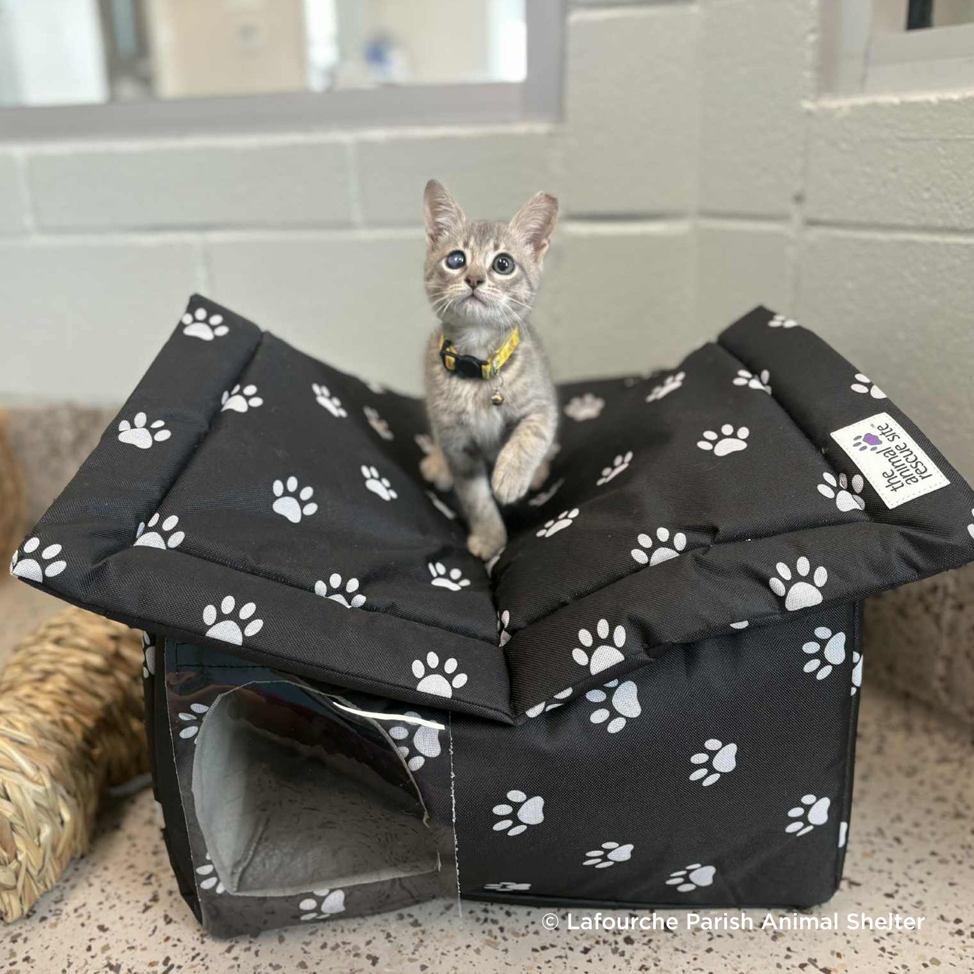 - Complete Comfort Kit - Give a cat house or crate, two cat bowls for food and water, and a cozy blanket and self warming mat.