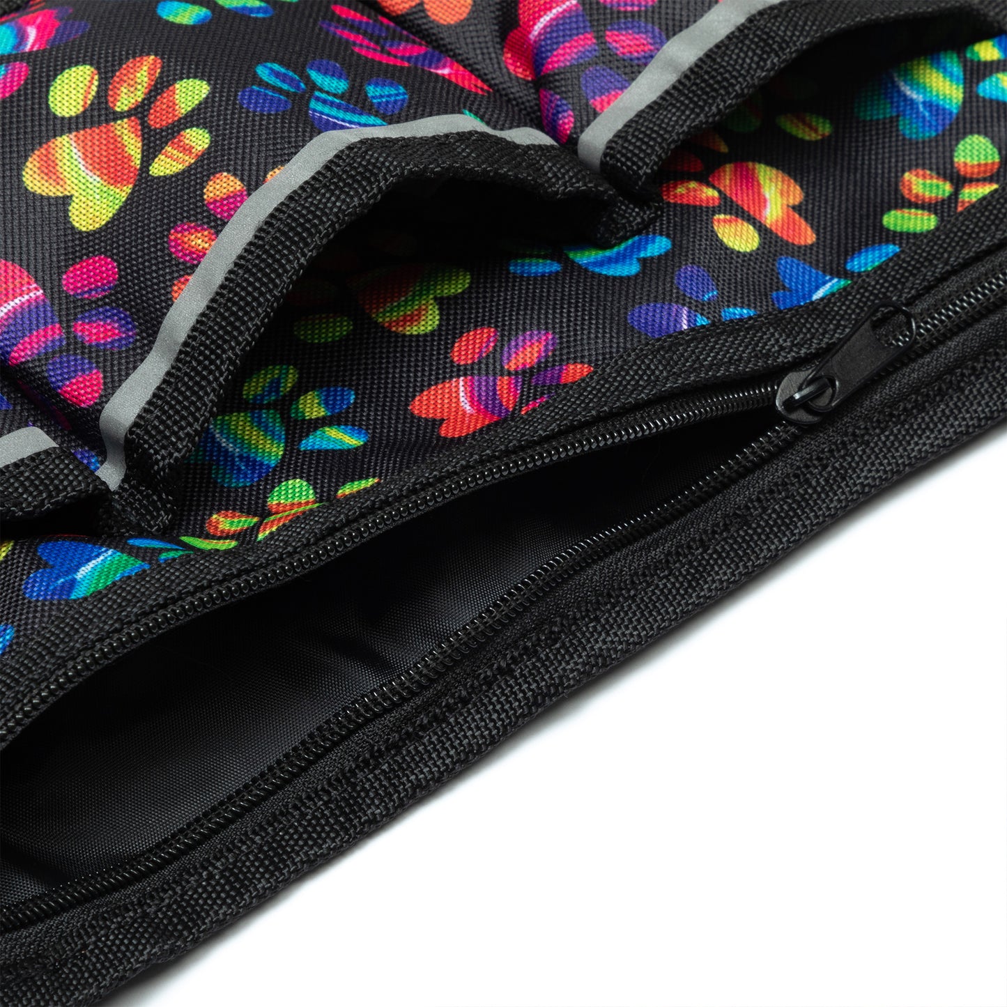 A practical and adorable accessory designed for pet lovers on the go. Featuring a compact design with multiple exterior pockets and a zippered closure, this bag attaches with adjustable velcro straps to a stroller or walker with ease -- making your life a little simpler! The defining feature is the exclusive paw print design, adding a charming touch that celebrates the bond between humans and their pets.