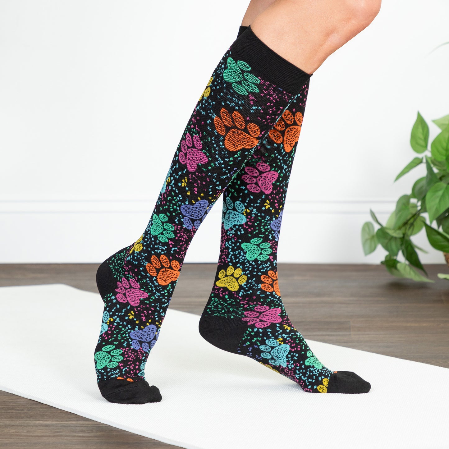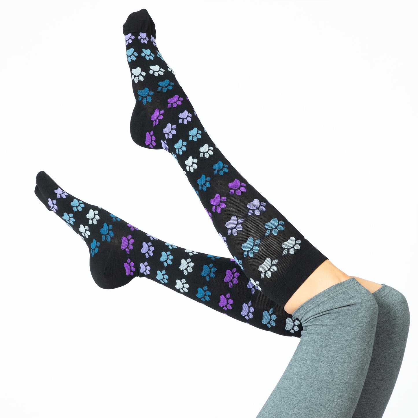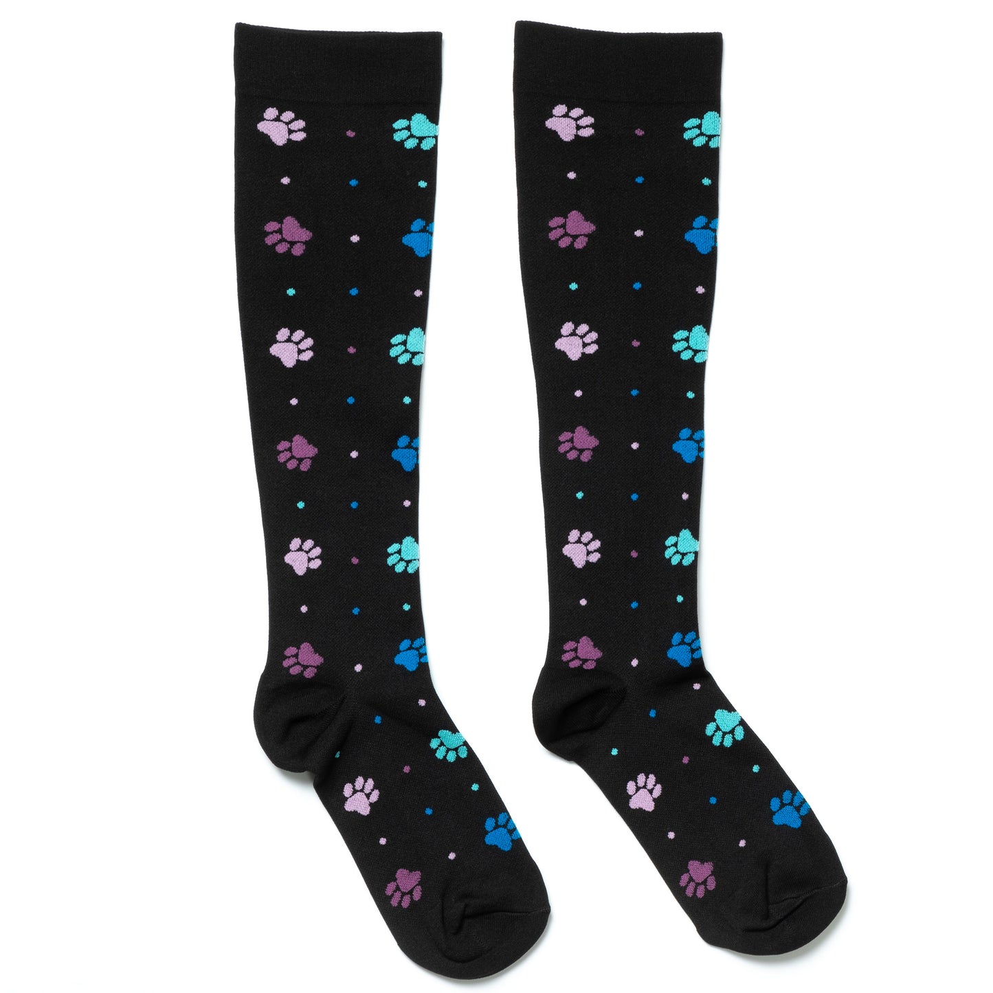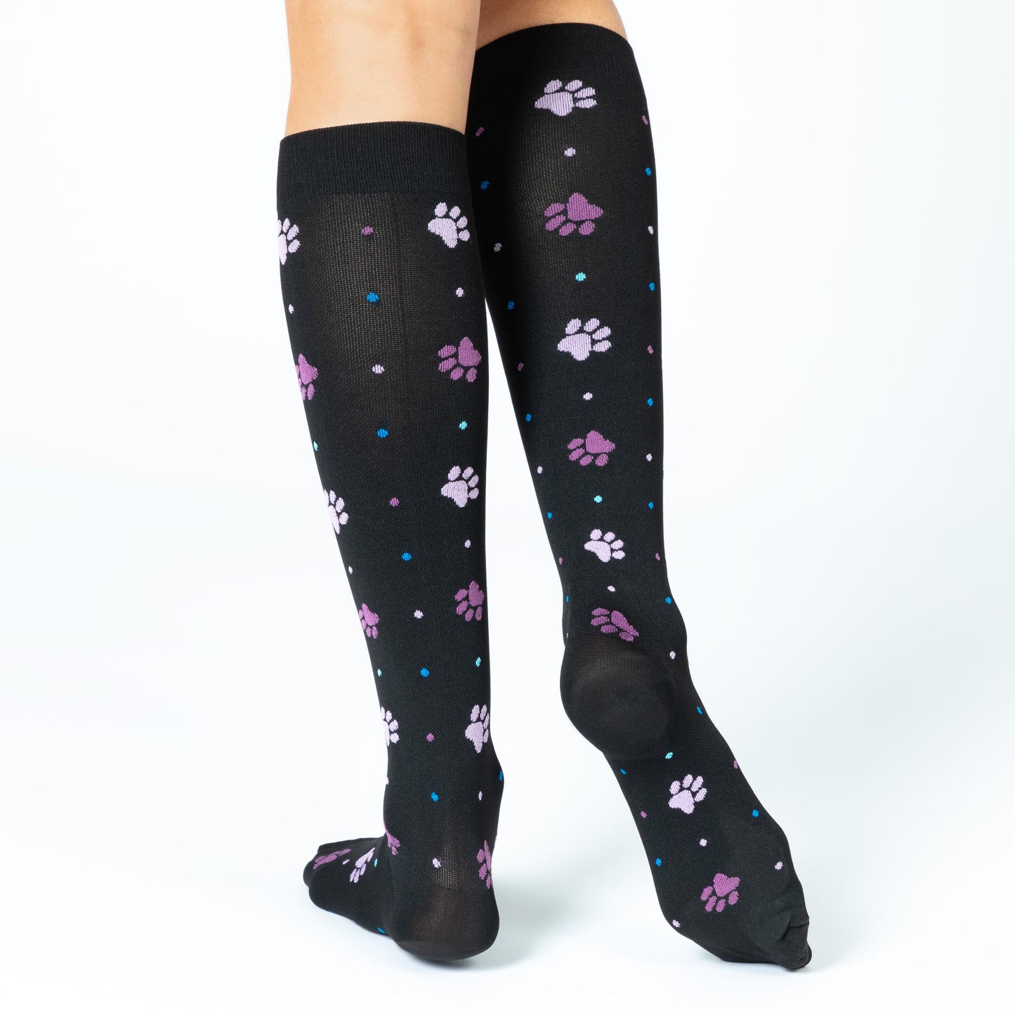 Step into comfort and style with Paw Print Compression Socks, designed for those who love to combine fashion with functionality. With a comfortable 20-30mmHg compression level, these black socks adorned with charming paw prints not only elevate your outfit but also support your legs throughout the day. Perfect for animal lovers on the go, Paw Print Compression Socks offer compression and playful design, ensuring your legs feel energized and look fabulous.
