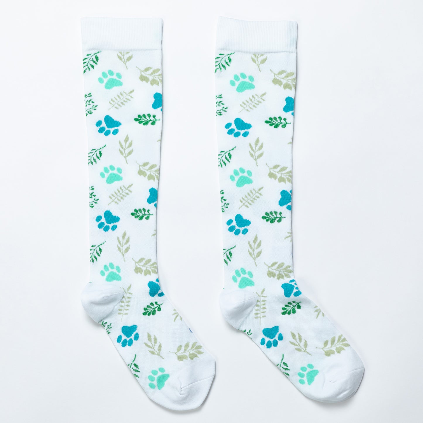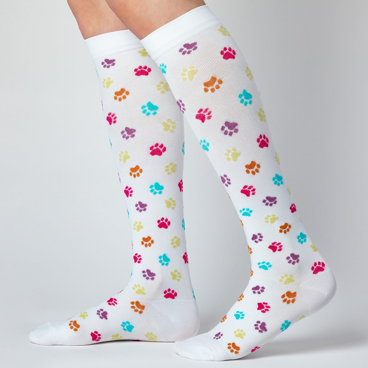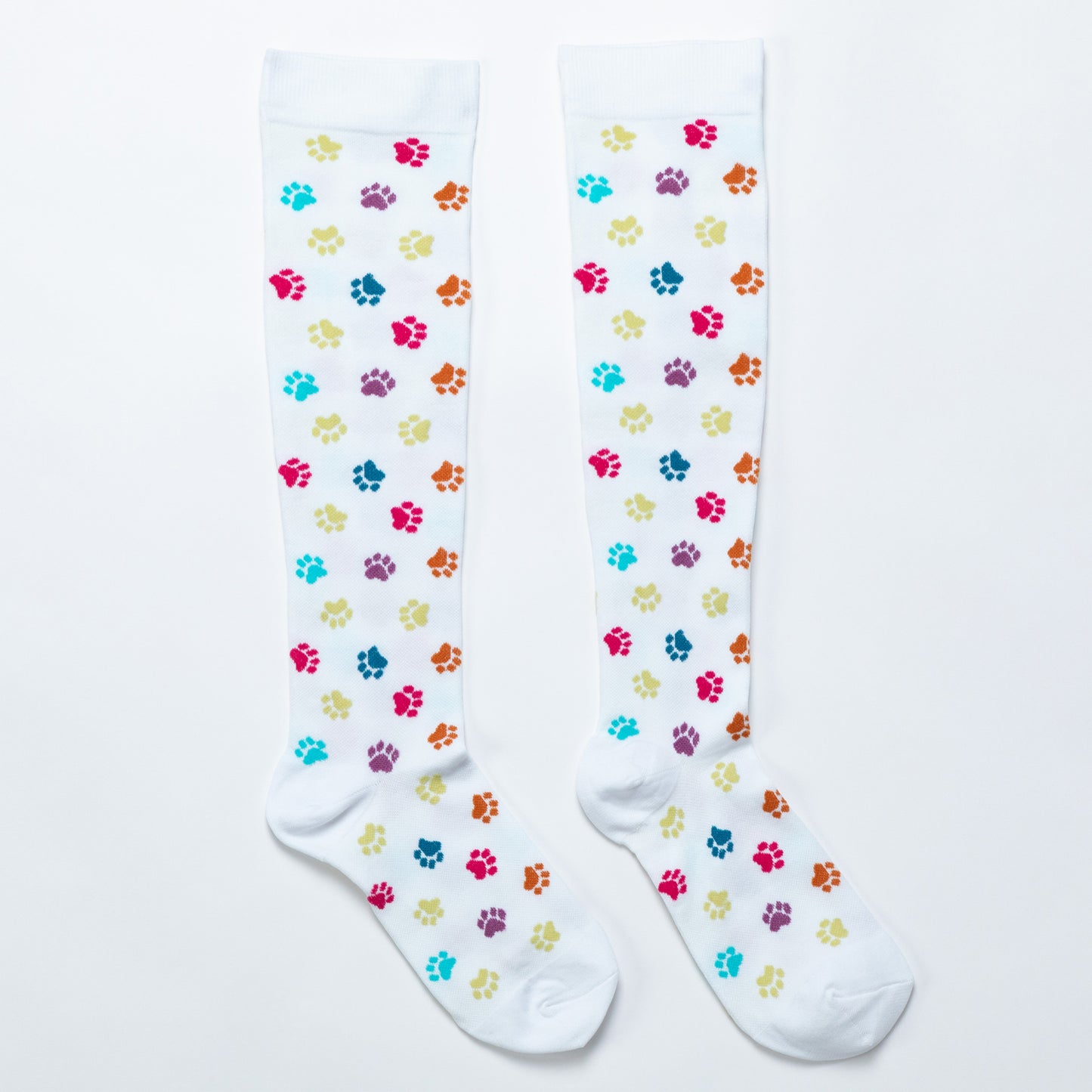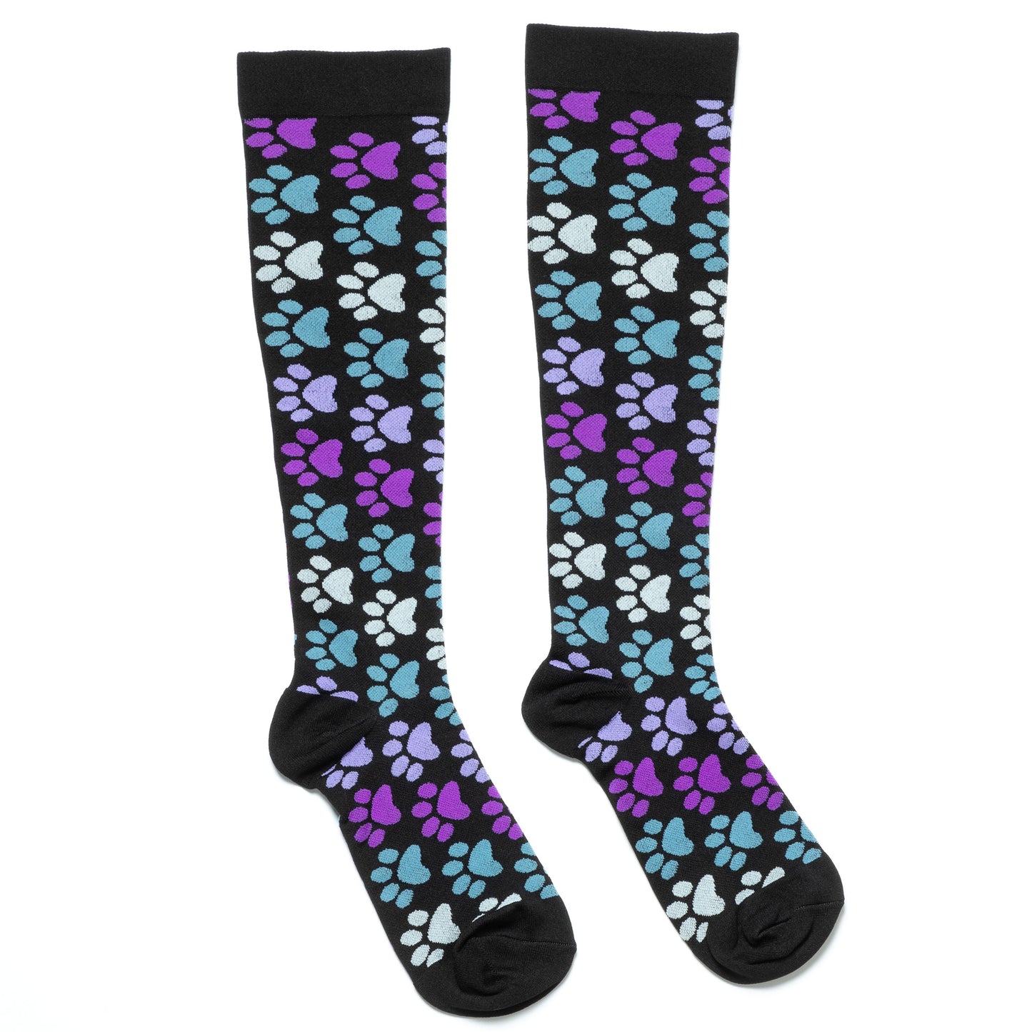 Step into comfort and style with Paw Print Compression Socks, designed for those who love to combine fashion with functionality. With a comfortable 20-30mmHg compression level, these black socks adorned with charming paw prints not only elevate your outfit but also support your legs throughout the day. Perfect for animal lovers on the go, Paw Print Compression Socks offer compression and playful design, ensuring your legs feel energized and look fabulous.