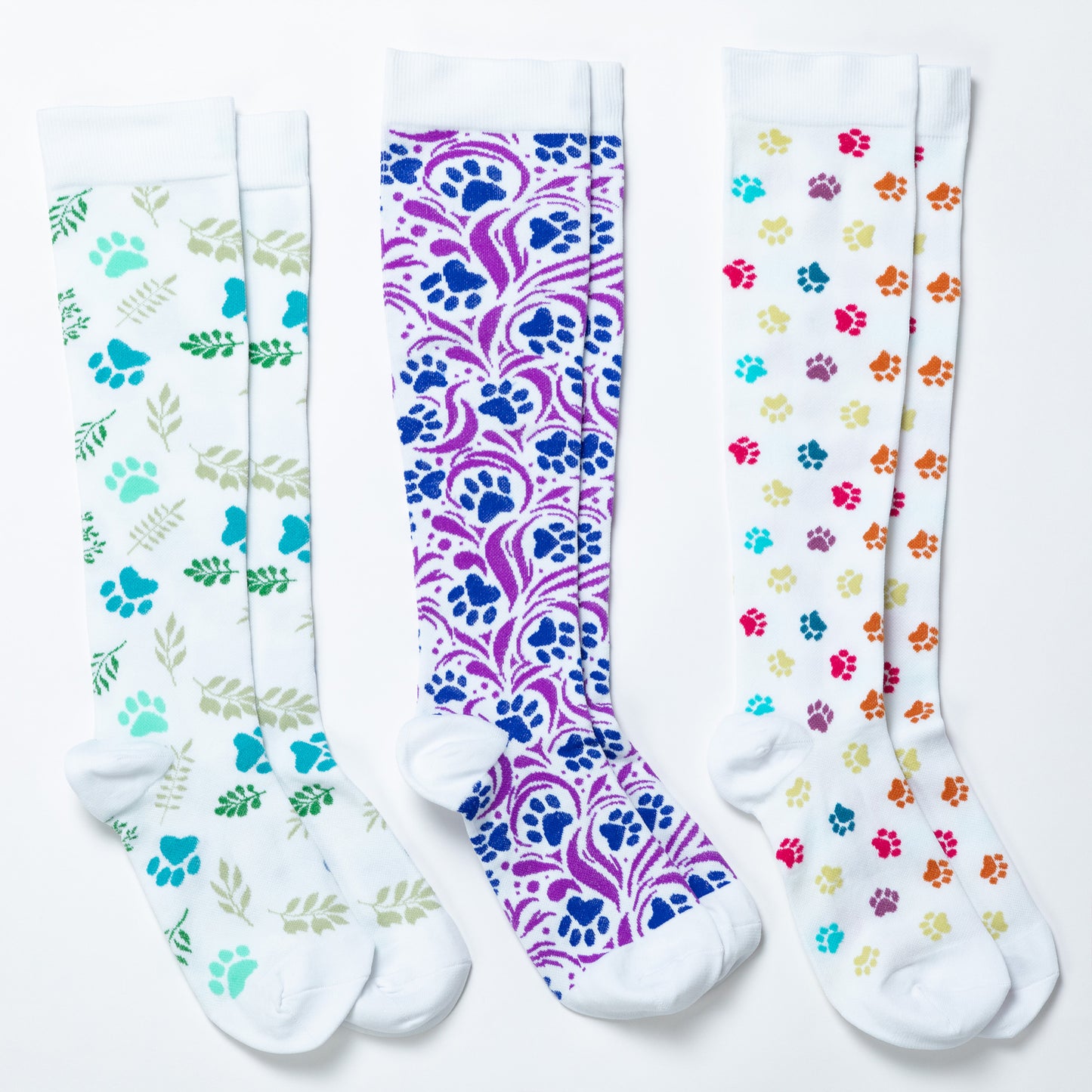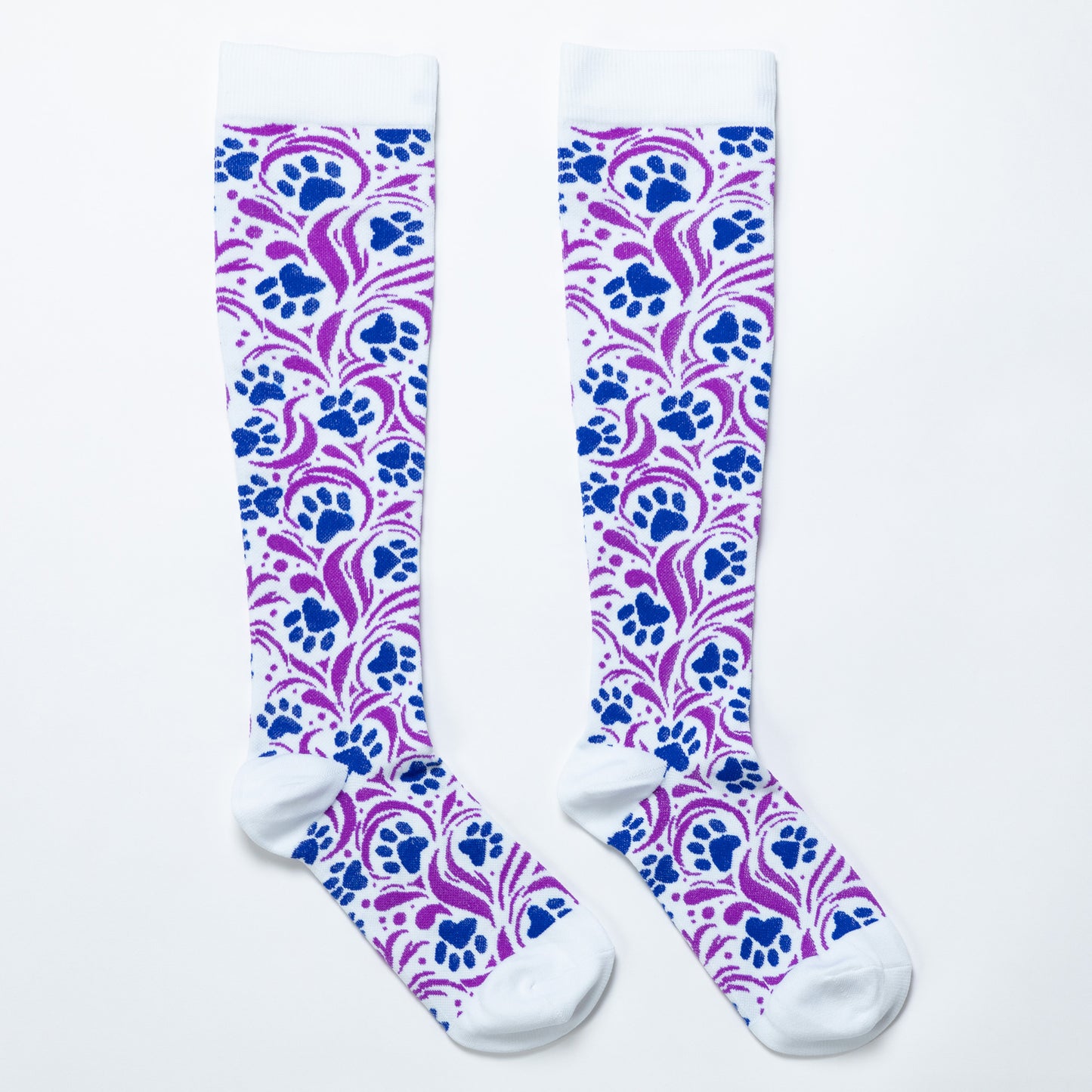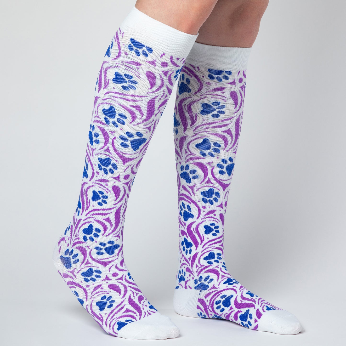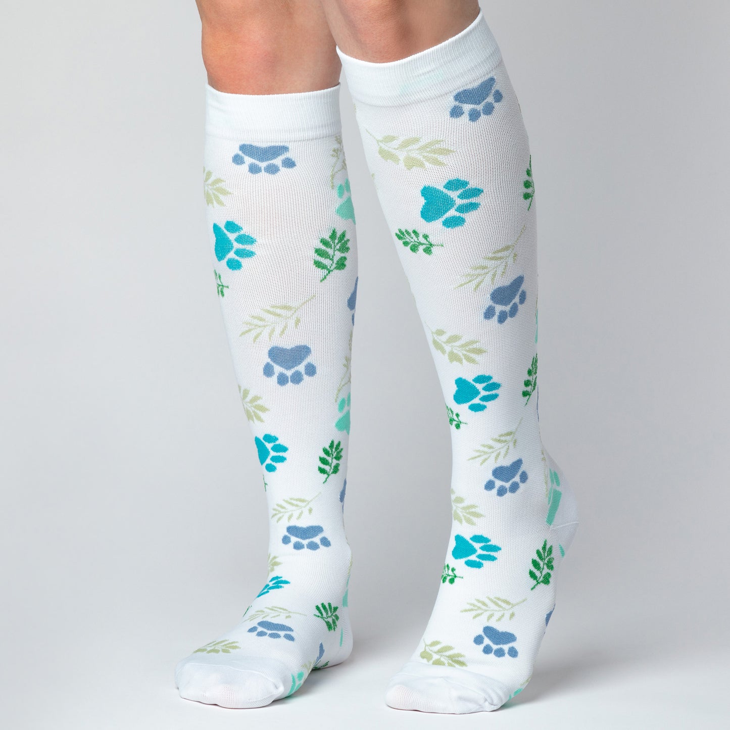 Step into comfort and style with Paw Print Compression Socks, designed for those who love to combine fashion with functionality. With a comfortable 20-30mmHg compression level, these black socks adorned with charming paw prints not only elevate your outfit but also support your legs throughout the day. Perfect for animal lovers on the go, Paw Print Compression Socks offer compression and playful design, ensuring your legs feel energized and look fabulous.