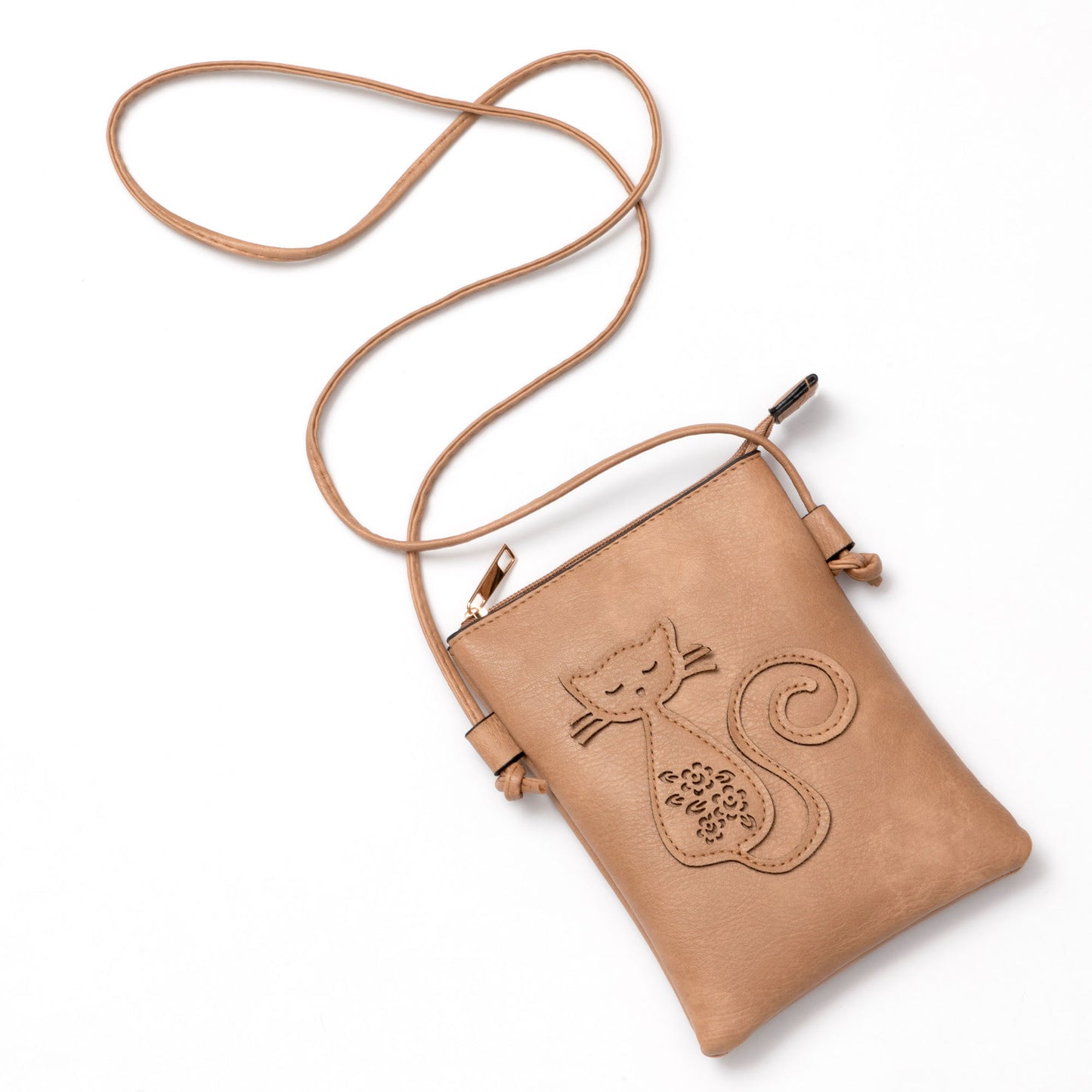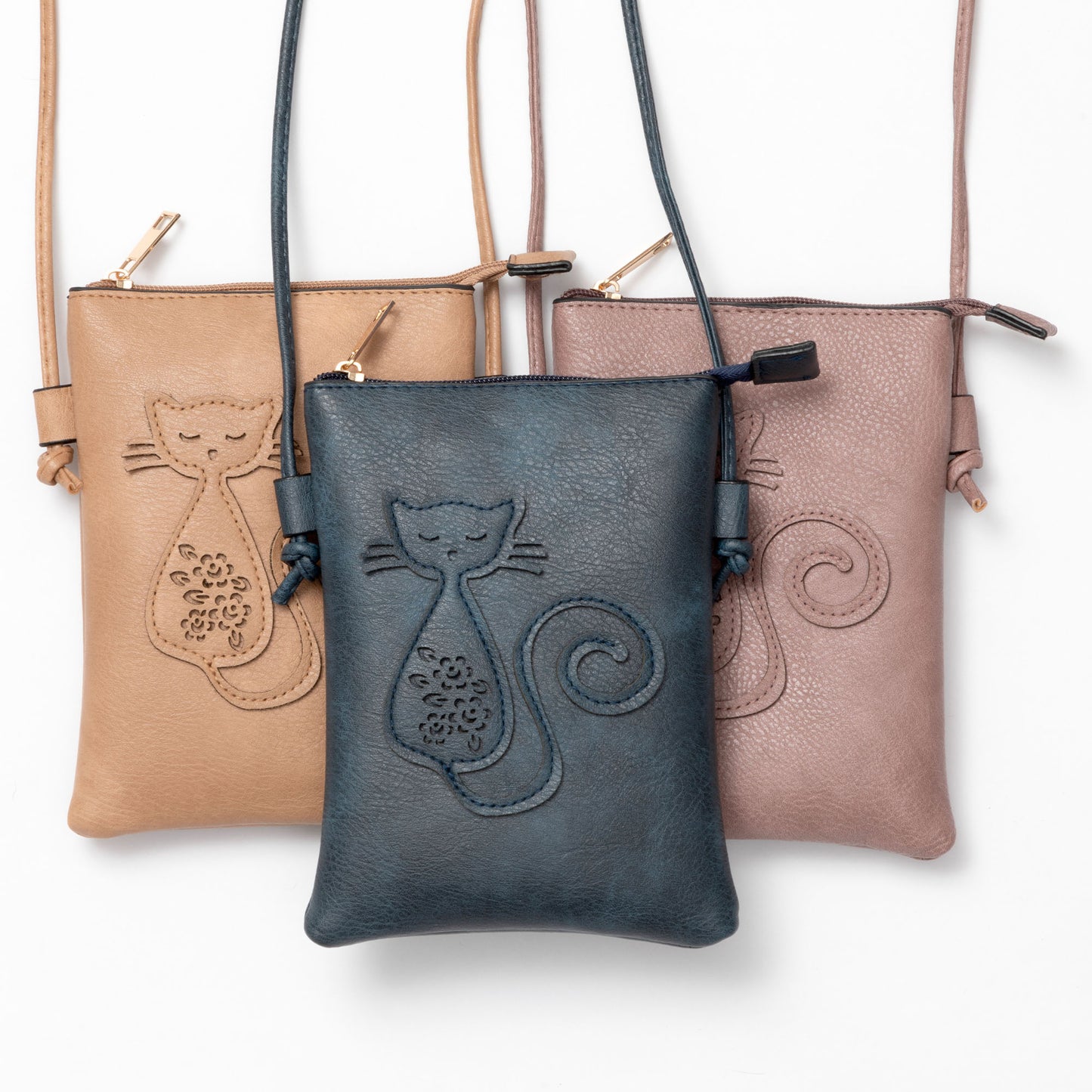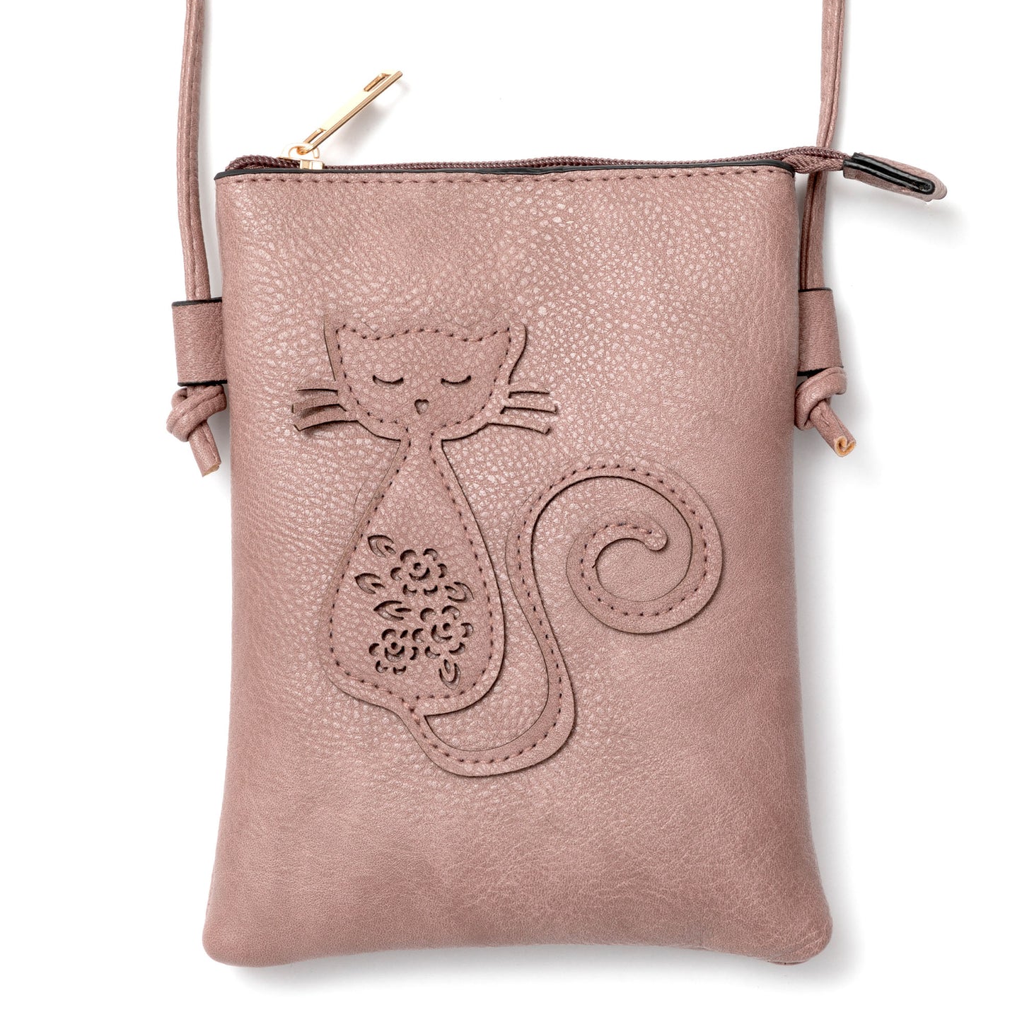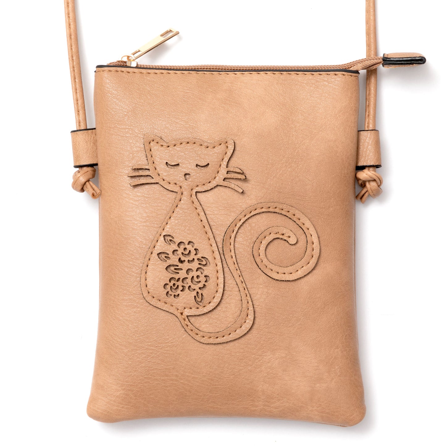 Crafted from high-quality faux leather, this stylish accessory offers the perfect blend of fashion and compassion. Featuring a charming cat silhouette on the front, this crossbody bag celebrates your feline friends and is complemented by a convenient zipper closure.