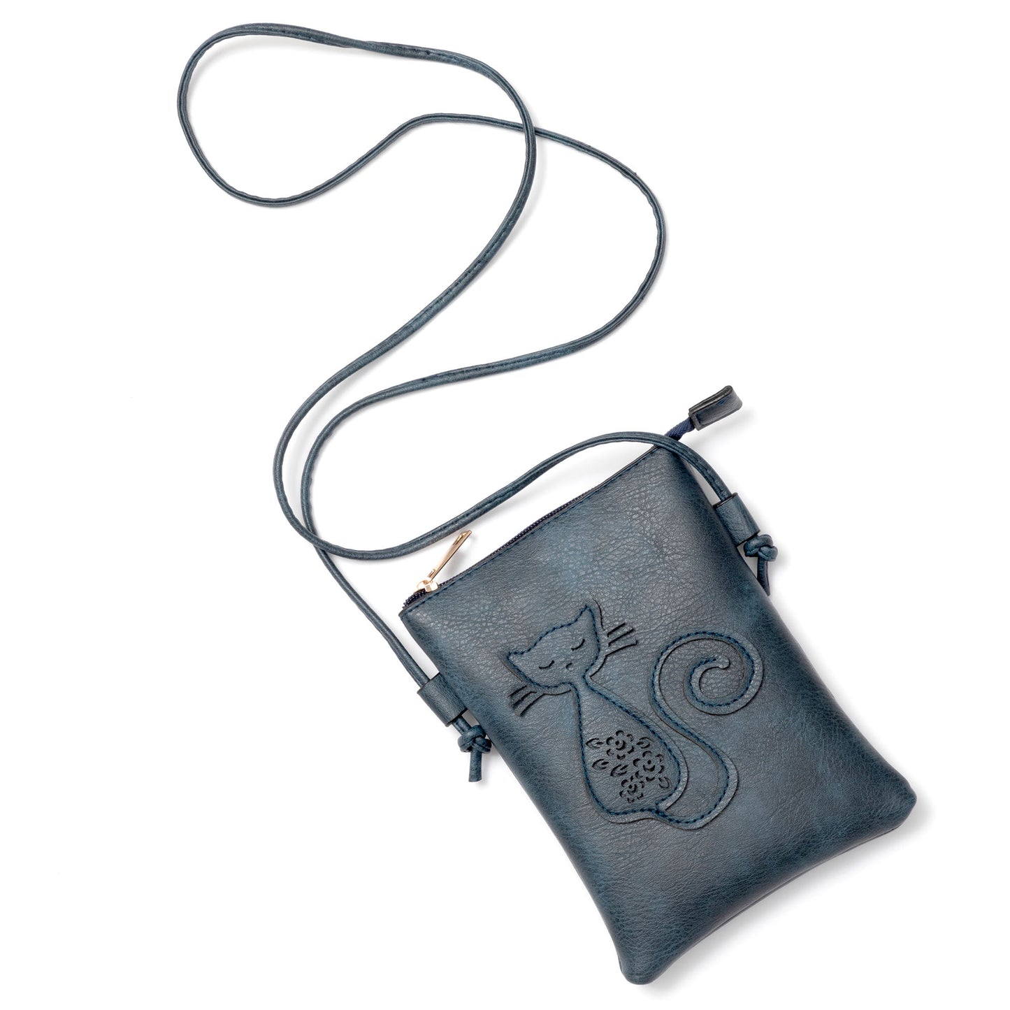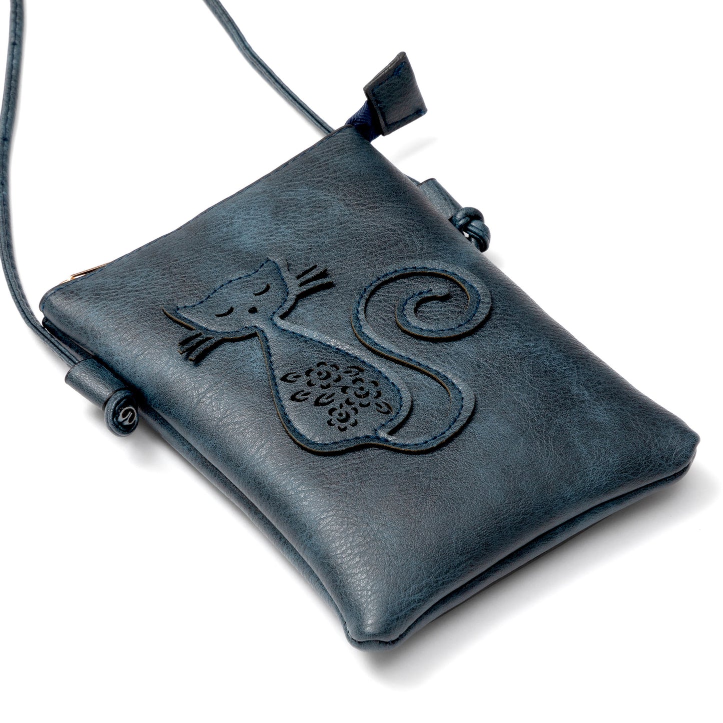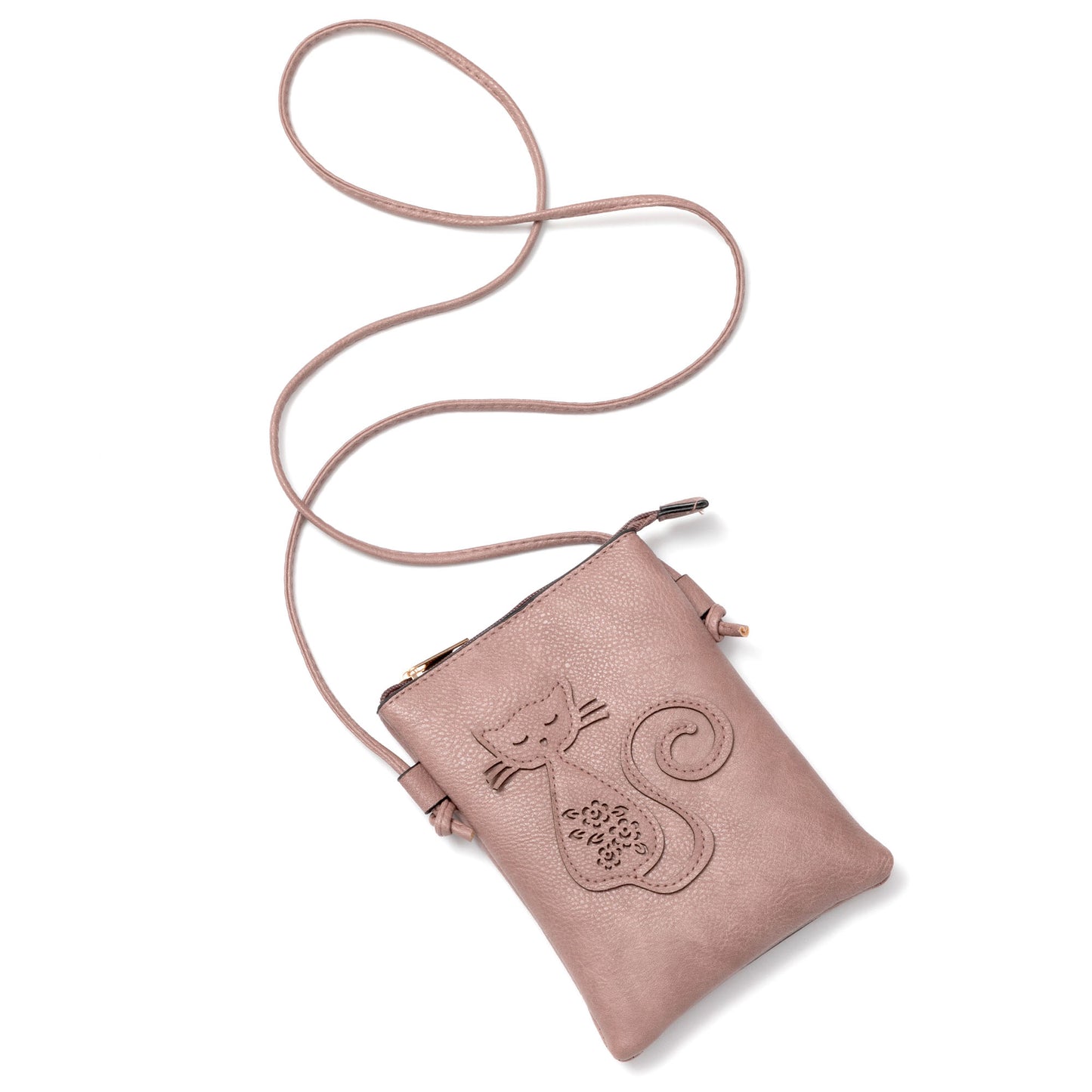 Crafted from high-quality faux leather, this stylish accessory offers the perfect blend of fashion and compassion. Featuring a charming cat silhouette on the front, this crossbody bag celebrates your feline friends and is complemented by a convenient zipper closure.