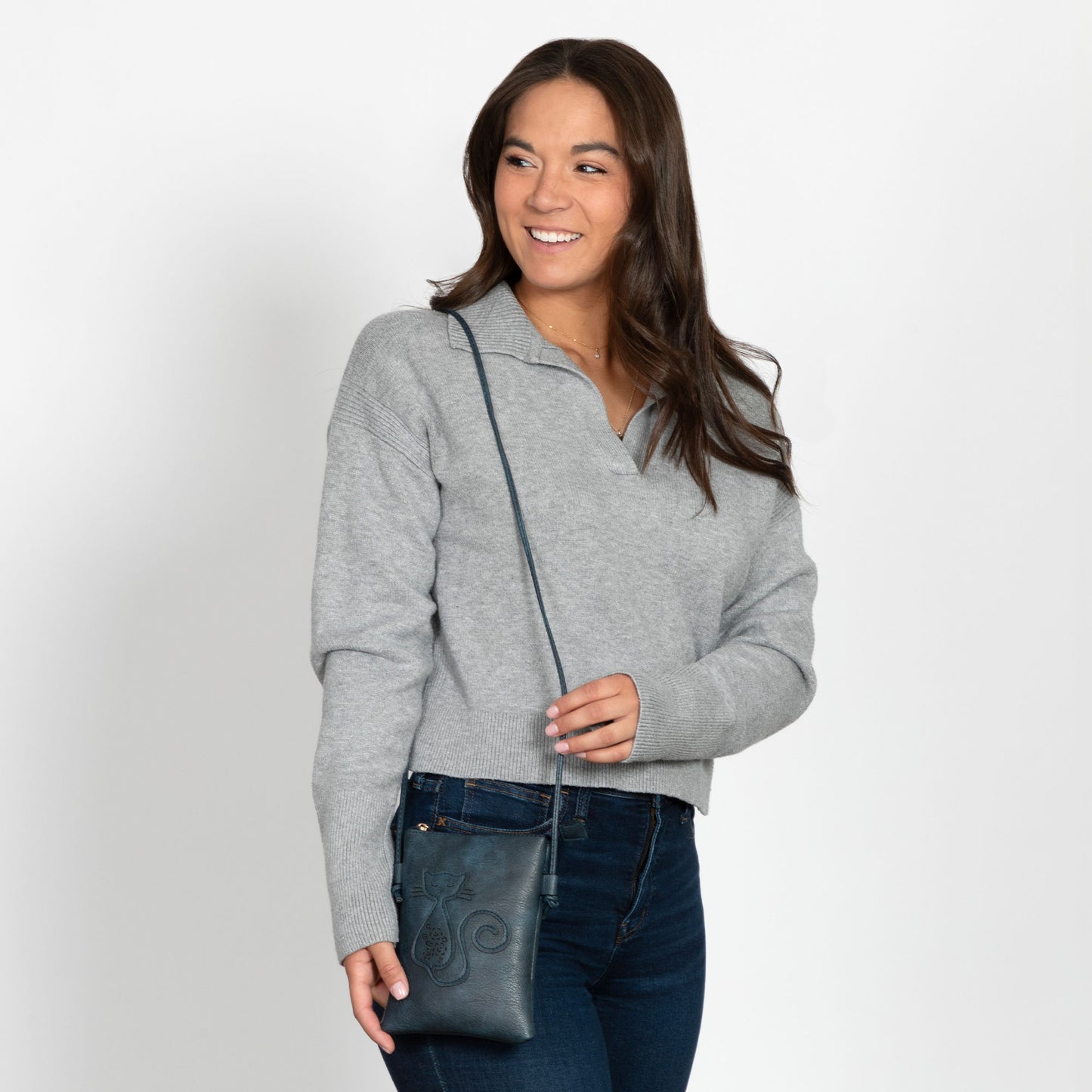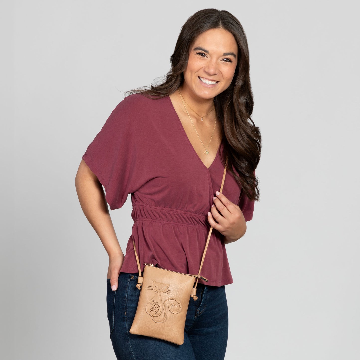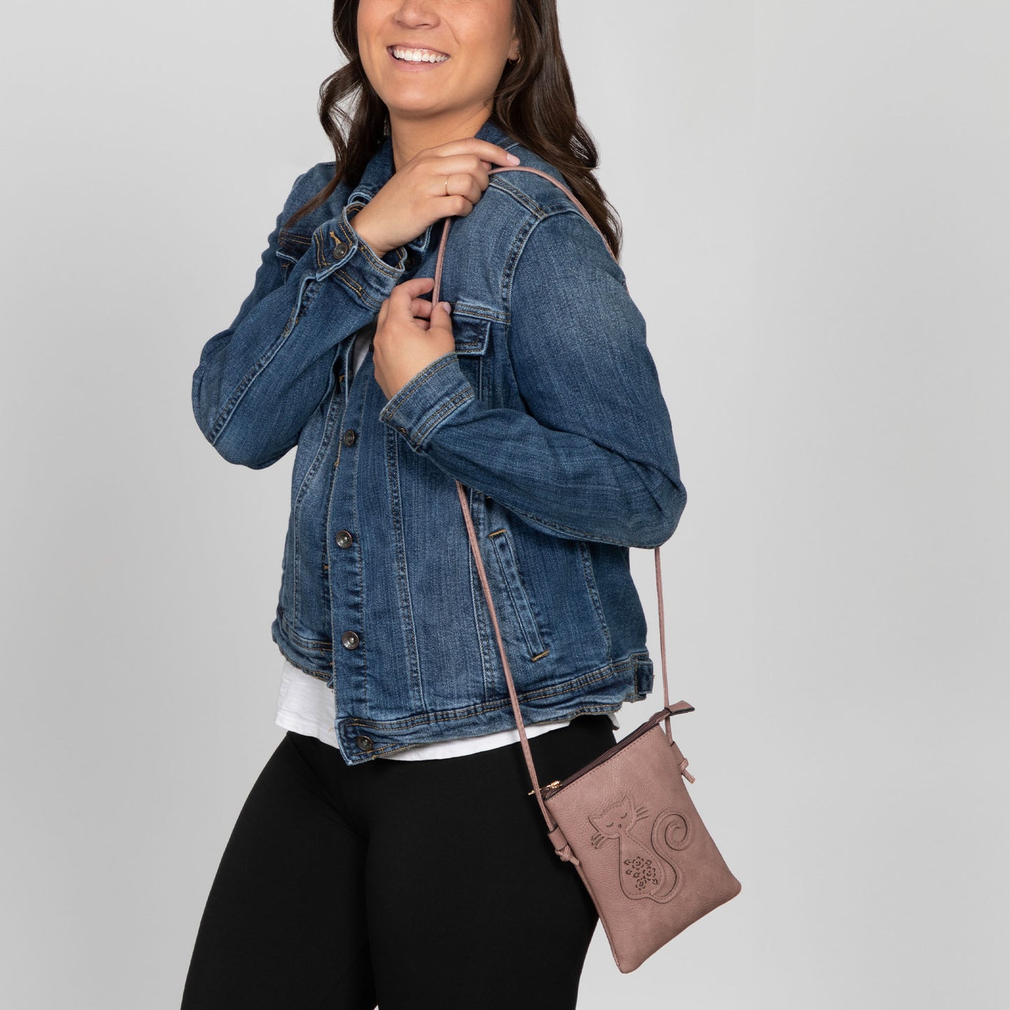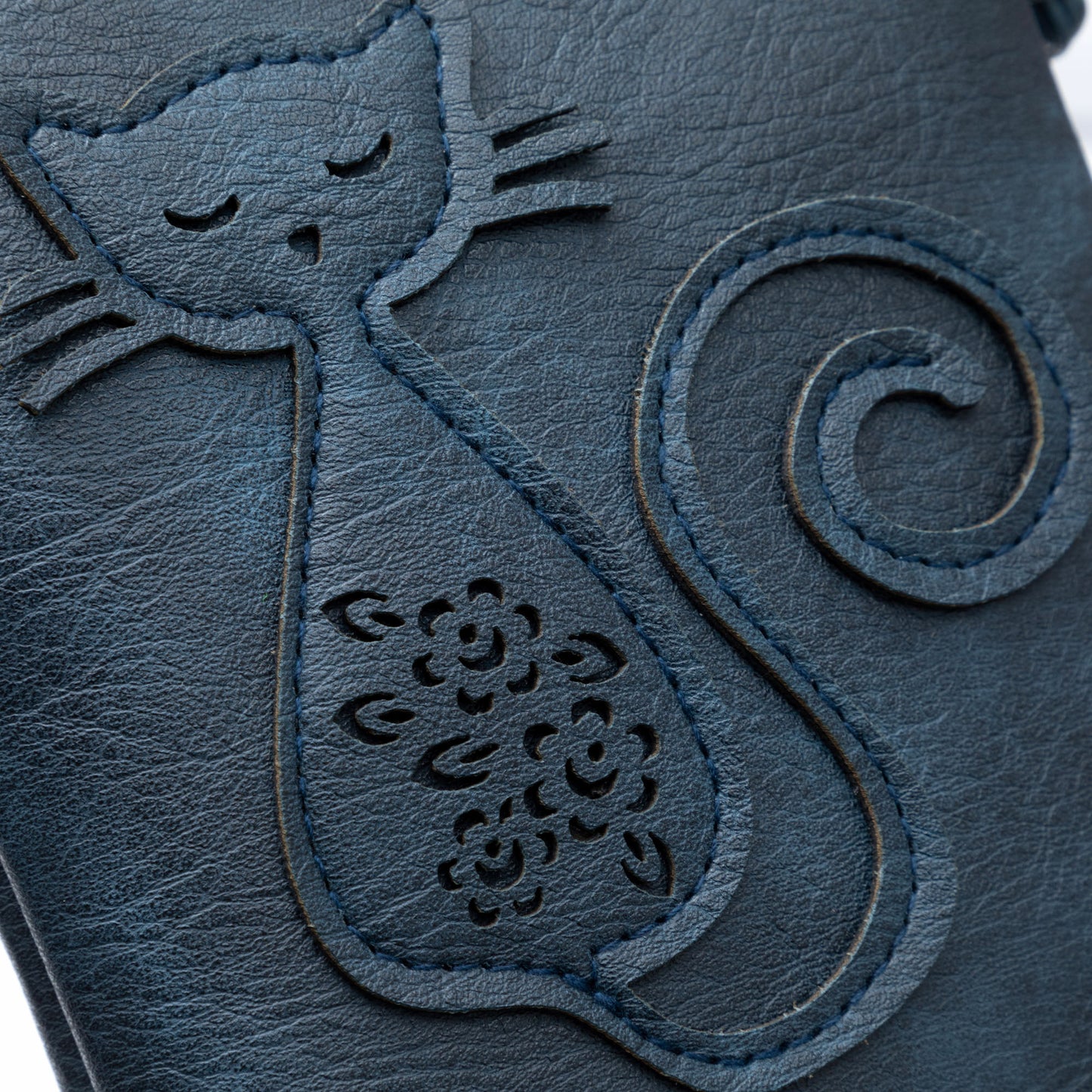 Crafted from high-quality faux leather, this stylish accessory offers the perfect blend of fashion and compassion. Featuring a charming cat silhouette on the front, this crossbody bag celebrates your feline friends and is complemented by a convenient zipper closure.