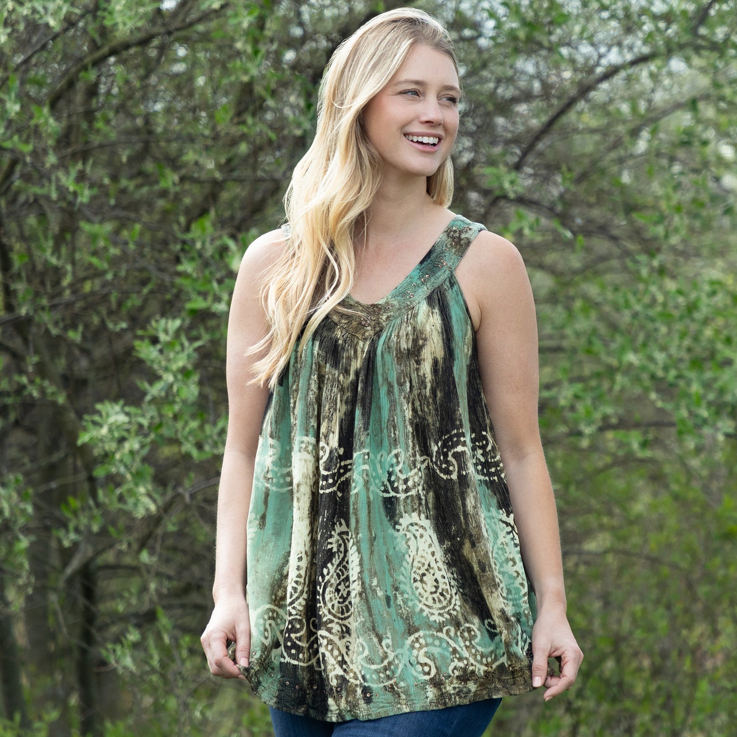 Step into bohemian elegance with this sleeveless tunic, a radiant fusion of detailed craftsmanship and vibrant hues. Handcrafted in India, each piece is a testament to intricate artistry, featuring exquisite beading and embroidery adorning the front neckline and hem.