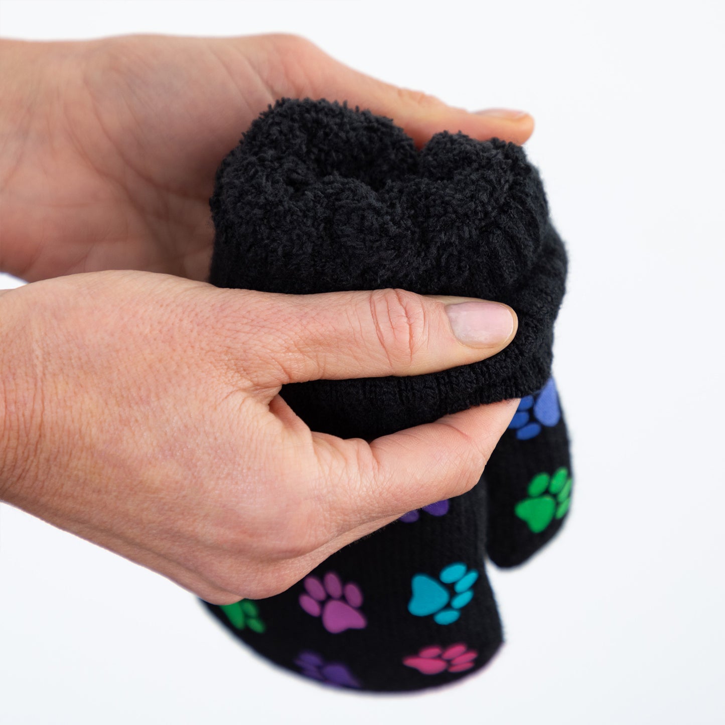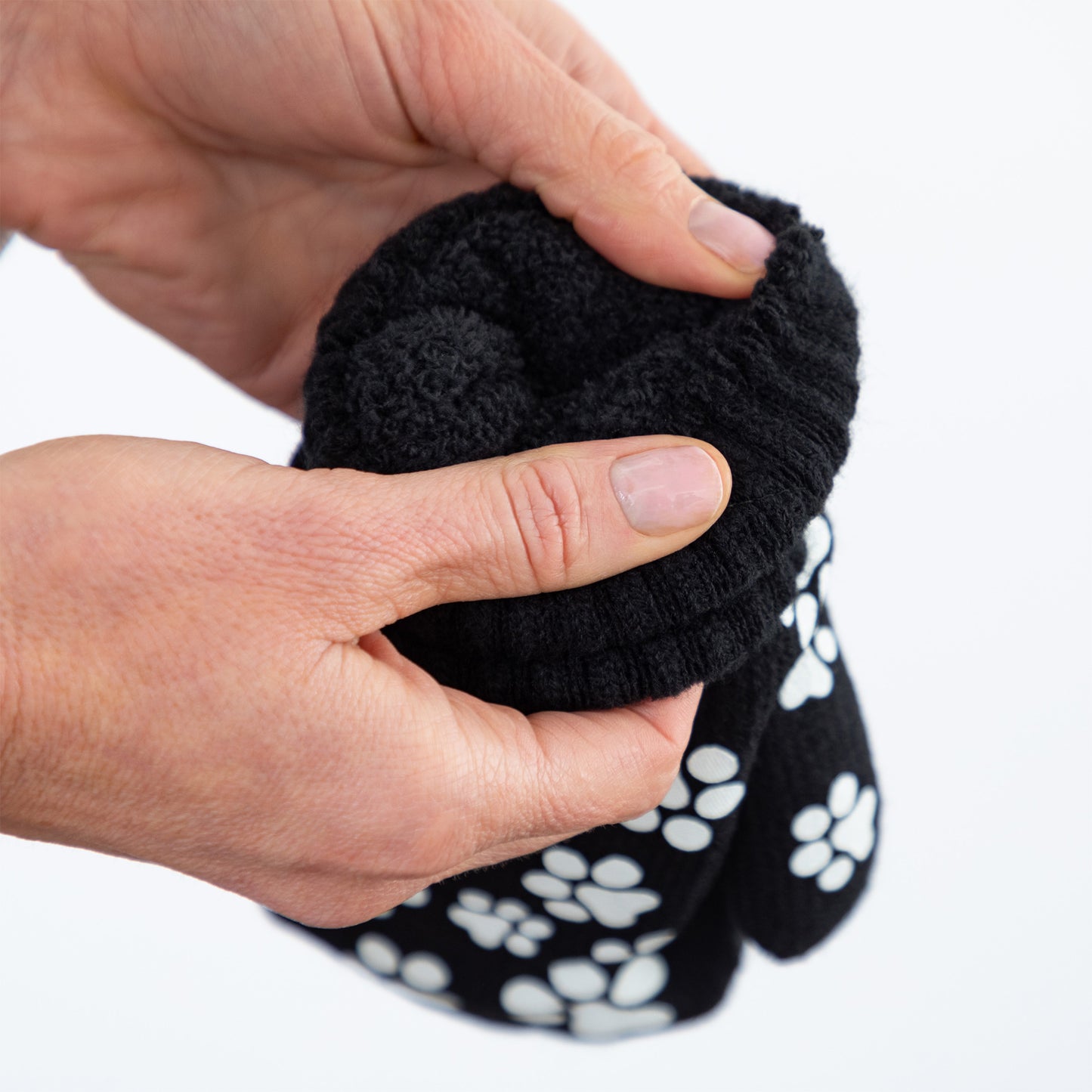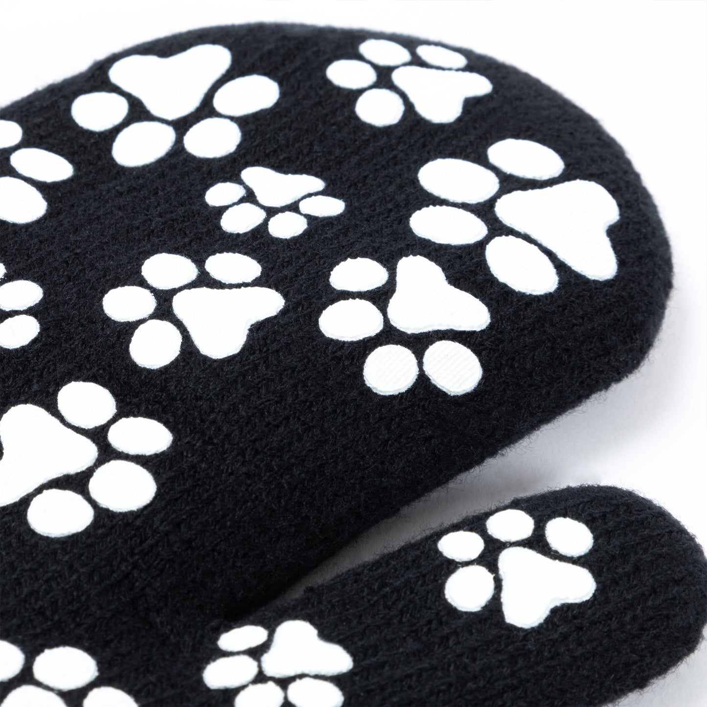 Wrap your hands in warmth and style with this super soft pair of fleece-lined mittens! These black mittens, crafted from soft and durable polyester, feature an adorable array of paw prints on the backs, adding a playful touch to your winter wear. Perfect for animal lovers, these mittens not only keep your hands cozy but also showcase your love for furry friends.