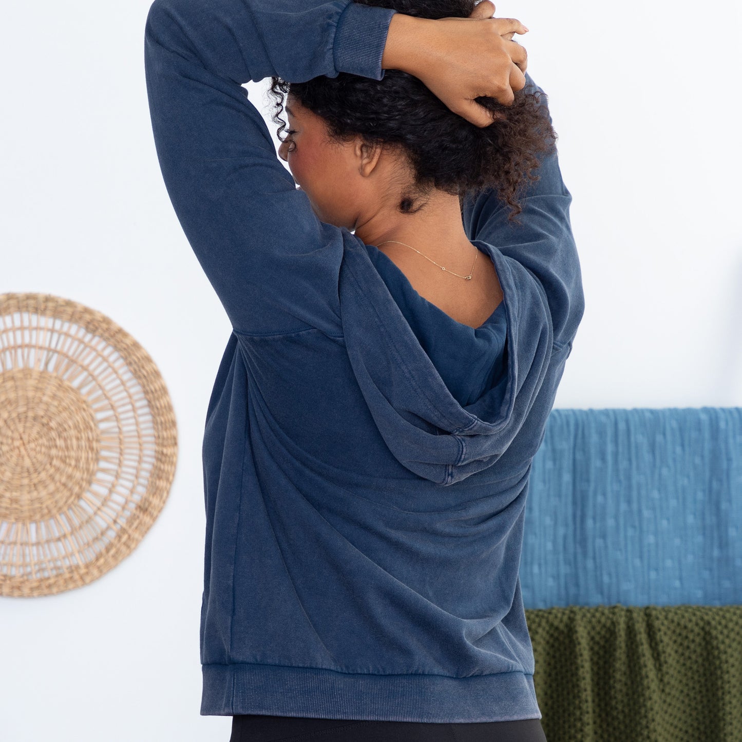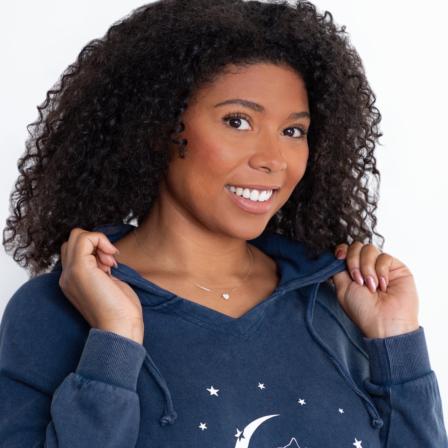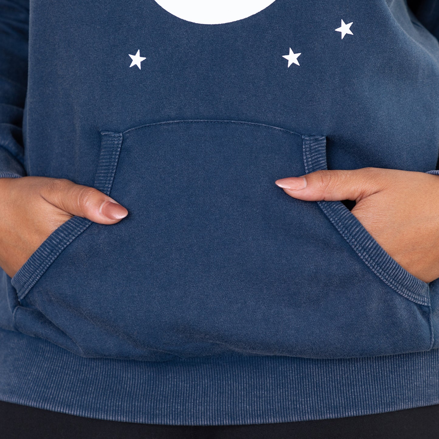 Embrace laid-back style with the soft pullover mineral wash hoodie, designed for comfort with a celestial flair. This lightweight, 100% cotton hoodie in rich navy blue features a unique mineral wash, creating a one-of-a-kind, vintage look. With a relaxed v-notch neckline, drawstring hood, and kangaroo pocket, it's the perfect cozy layer for pet lovers who want effortless style and everyday comfort.