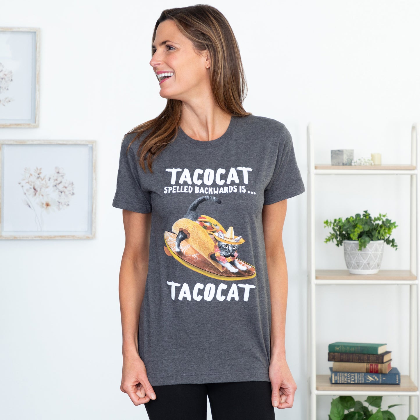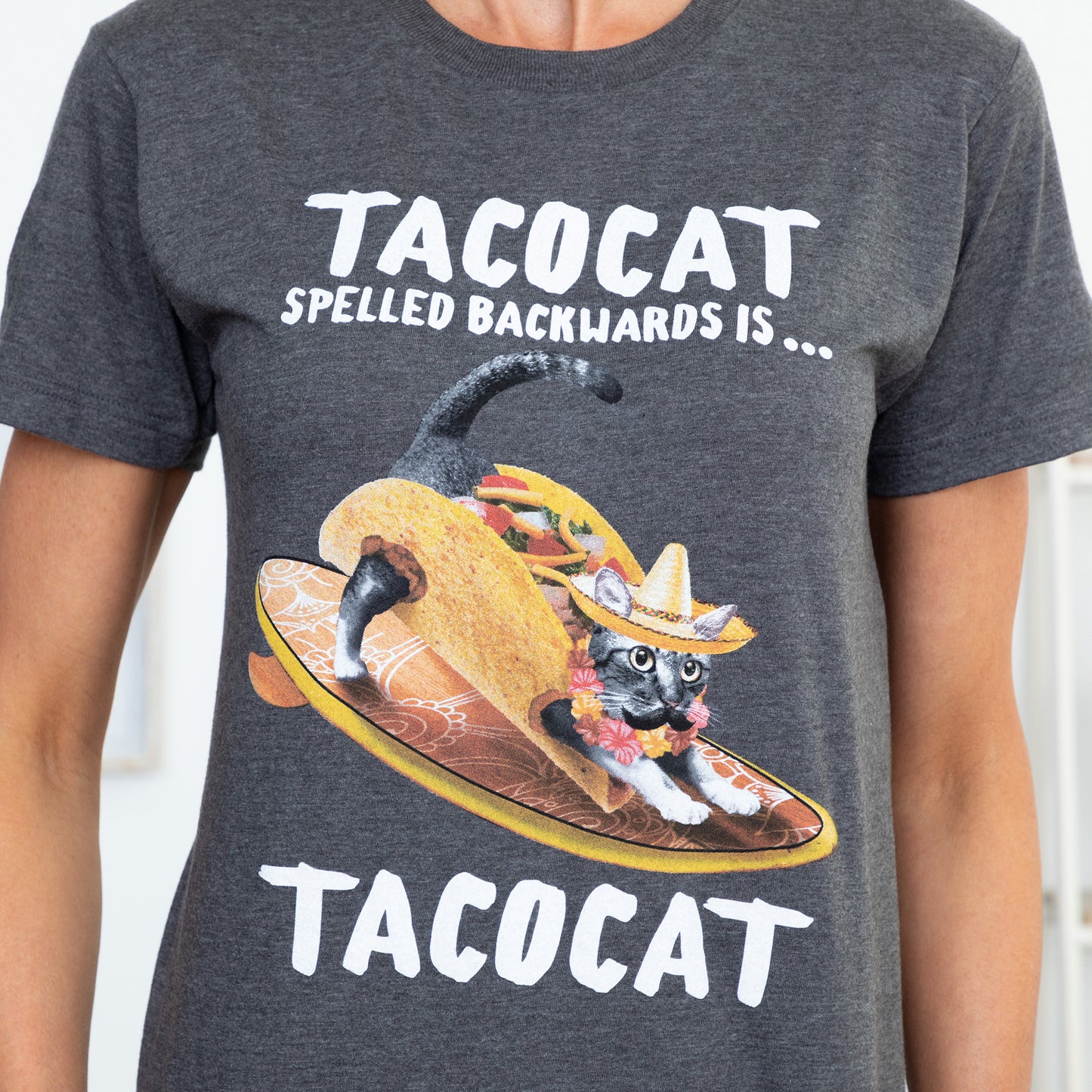 Enjoy a timeless graphic tee celebrating everyone's favorite palindrome: "TACOCAT spelled backwards is... TACOCAT." Crafted from a comfortable cotton-poly blend, this shirt combines softness with humor. Perfect for taco lovers and palindrome enthusiasts alike, it's a must-have addition to your wardrobe.