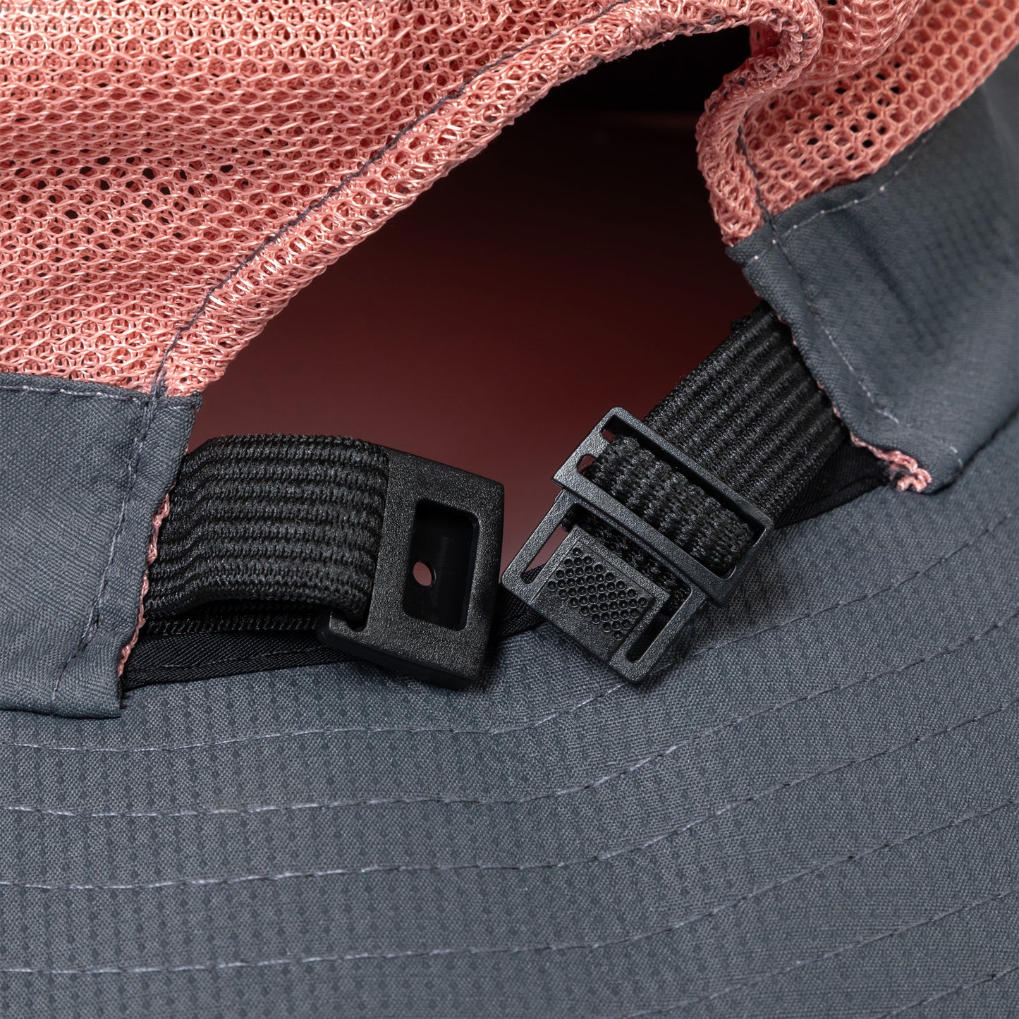 Stay cool and stylish with this breathable sun hat featuring a convenient ponytail hole. Crafted from 100% lightweight polyester, this hat is designed for ultimate comfort and practicality. With UPF 50+ sun protection, it helps shield you from harmful rays during long days outside. It also features adjustable chin and back straps for a custom fit and is fully washable. Whether you're hiking, gardening, or hitting the beach, this hat has you covered.