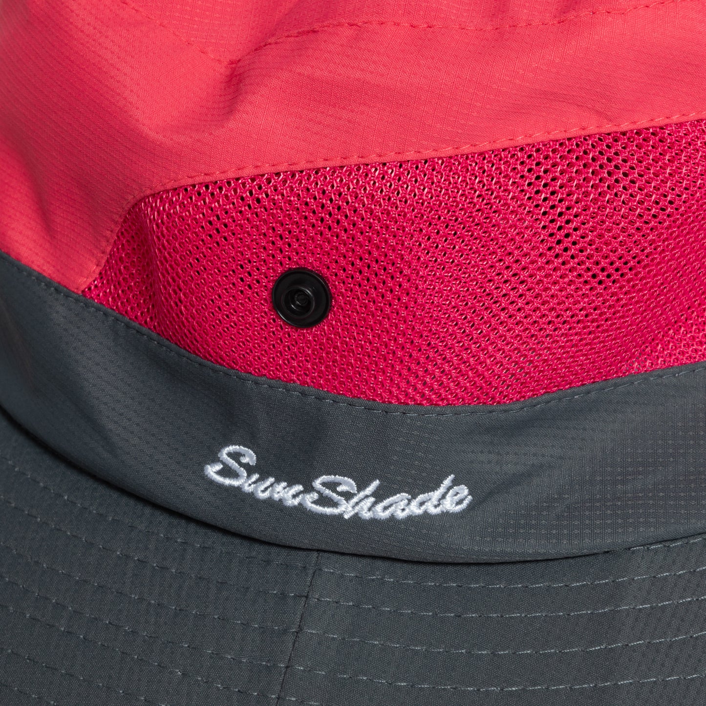 I have a couple of these that I use when Kayaking. But hair was always an issue with them staying on. This hat fixes the problem. With my ponytail going thru the hole it allows the hat to stay on even in the wind. Great color of pink.