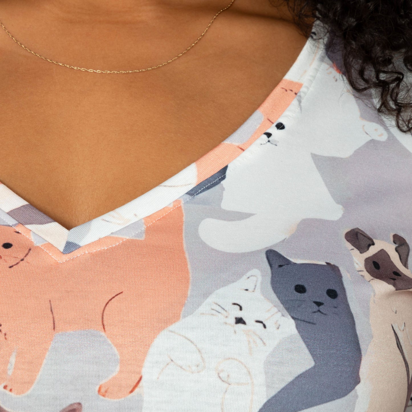 Experience a burst of color and intricate designs that span the entire shirt. This canvas boasts a lively and captivating exhibition of cats in all sorts of poses and expressions. The colors are vibrant and saturated, while the details capture the playful essence of cats. With its durable material and vivid imagery achieved through sublimation printing, this shirt offers a comfortable fit with a smooth finish. Whether you adore felines or appreciate bold and artsy clothing, an all-over sublimated cat shirt is a must-have for making a statement.