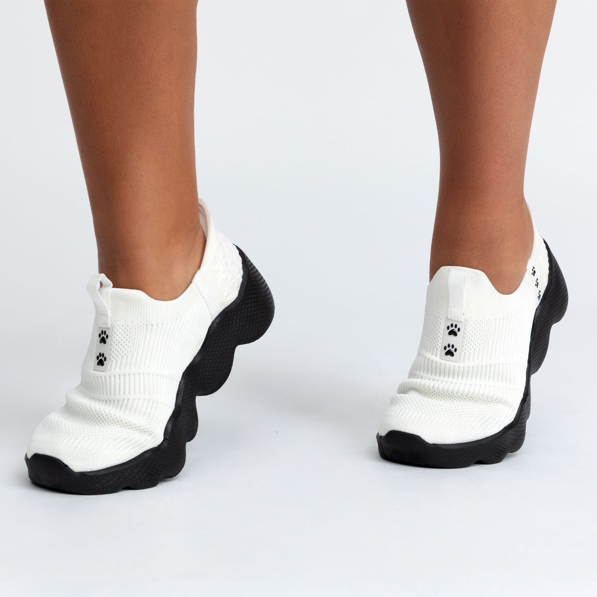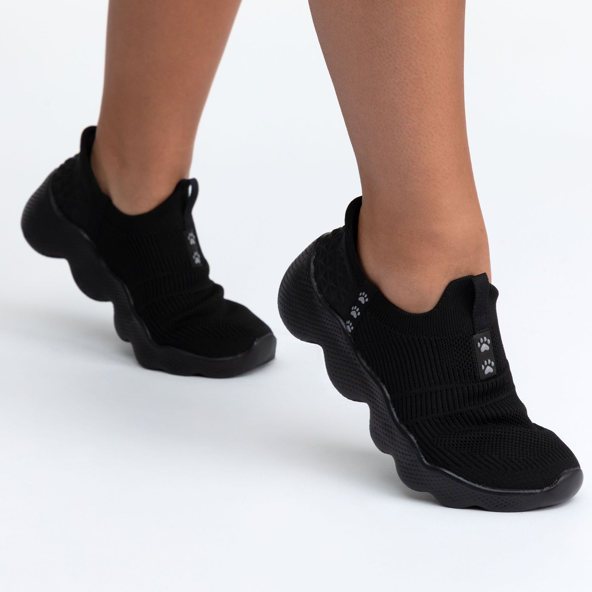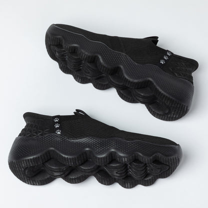 Step into effortless comfort with these ultra-lightweight shoes featuring a flexible knit upper that conforms to your foot for a snug, breathable fit. Designed for hands-free convenience, the slide-in/step-in design makes them perfect for your on-the-go lifestyle. The durable PVC outsole provides deep traction and excellent support, while the adorable paw prints on the top and side add a touch of animal charm. Perfect for everyday wear, these shoes combine style, comfort, and practicality.