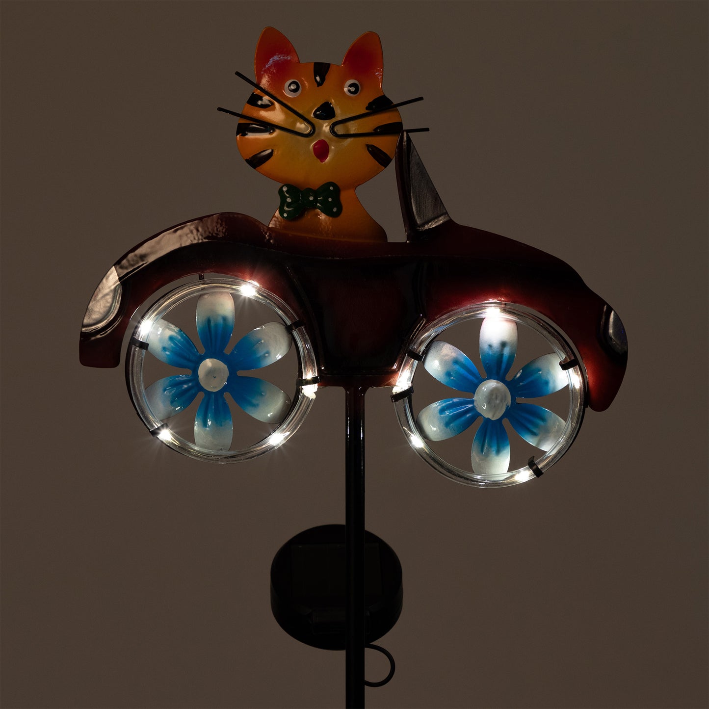 Illuminate your garden with the delightful charm of the Cruising Cat Solar Garden Stake. This whimsical garden accessory features an adorable orange cat driving a little car, adding a playful touch to your outdoor space.