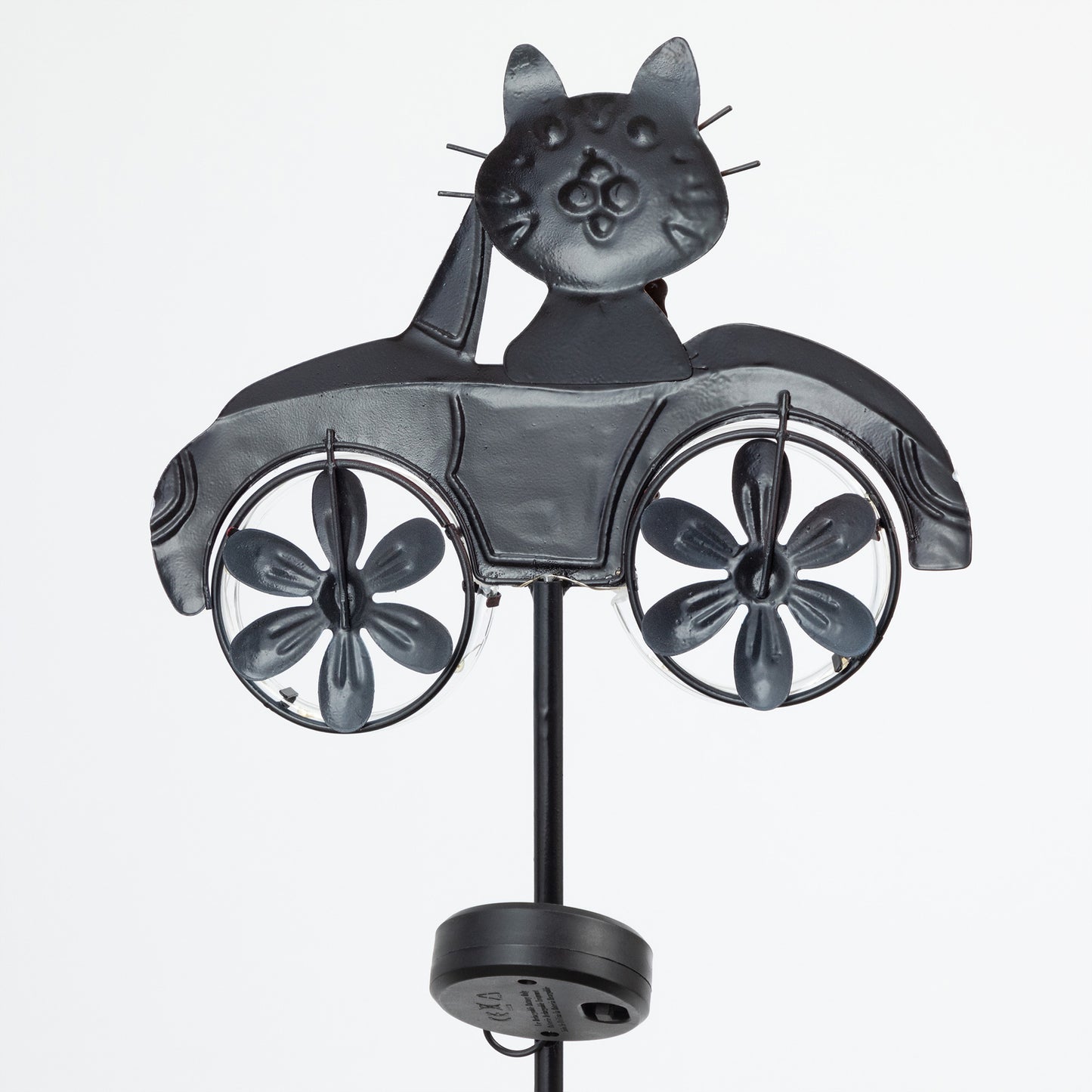 By day, it's a charming sculpture, but by night, the solar-powered wheels light up, casting a warm glow that enchants your garden. Eco-friendly and easy to install, the Cruising Cat Solar Garden Stake brings both joy and sustainable illumination to your garden paths, flower beds, and patios!