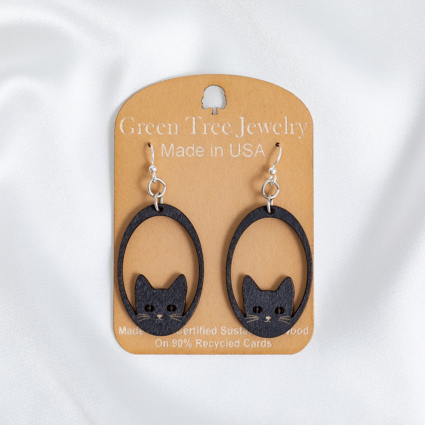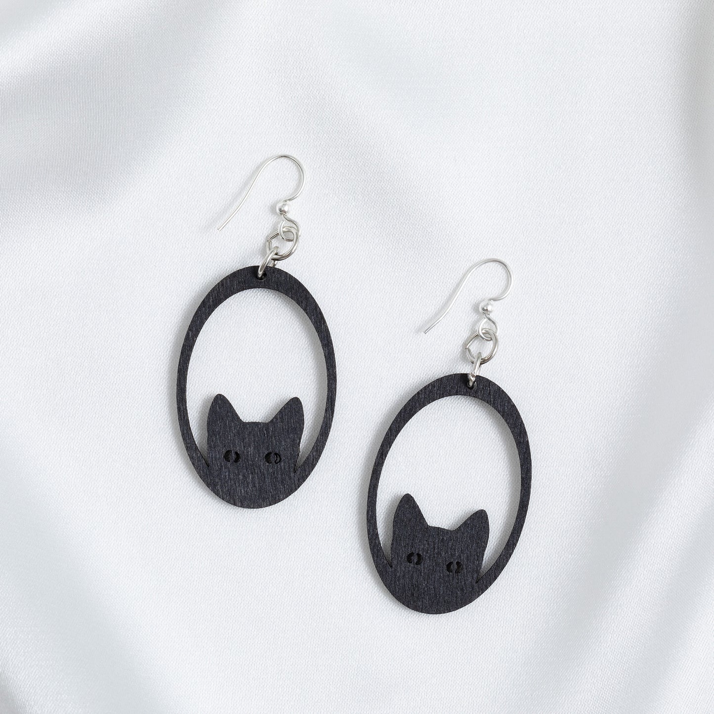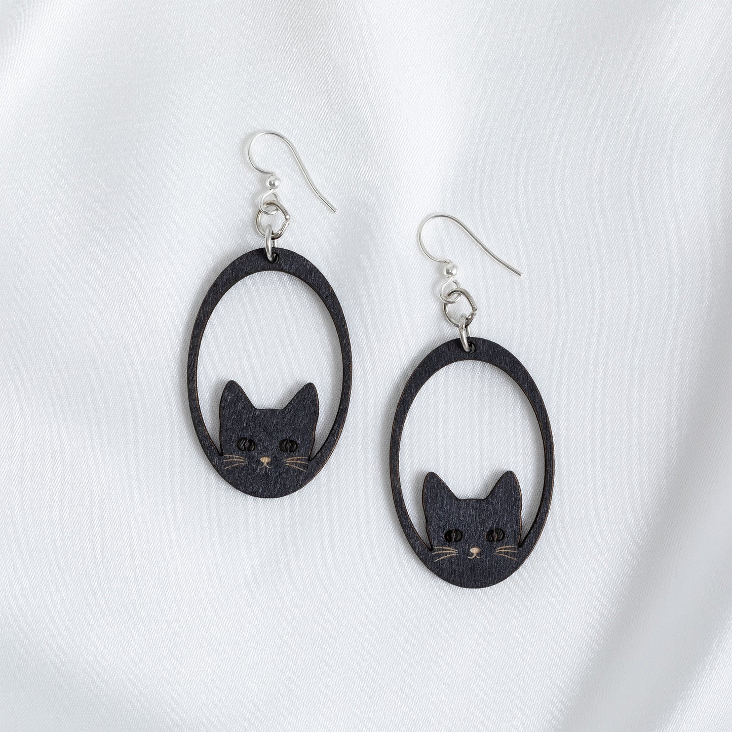 Treat your inner feline with the charming Sneaky Black Cat Wooden Earrings. Crafted from sustainably sourced wood and stained with eco-friendly, water-based dye, these earrings are both stylish and environmentally conscious. The hypoallergenic stainless steel ear wires ensure comfort, while the advanced electrophoretic coating guarantees lasting shine without tarnish. Featuring a charming black cat peeking out from a circular pendant, these earrings add a touch of good luck to your look!