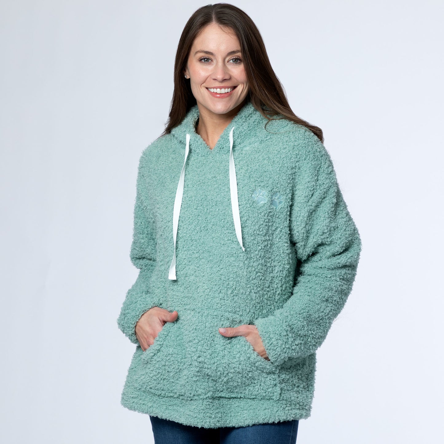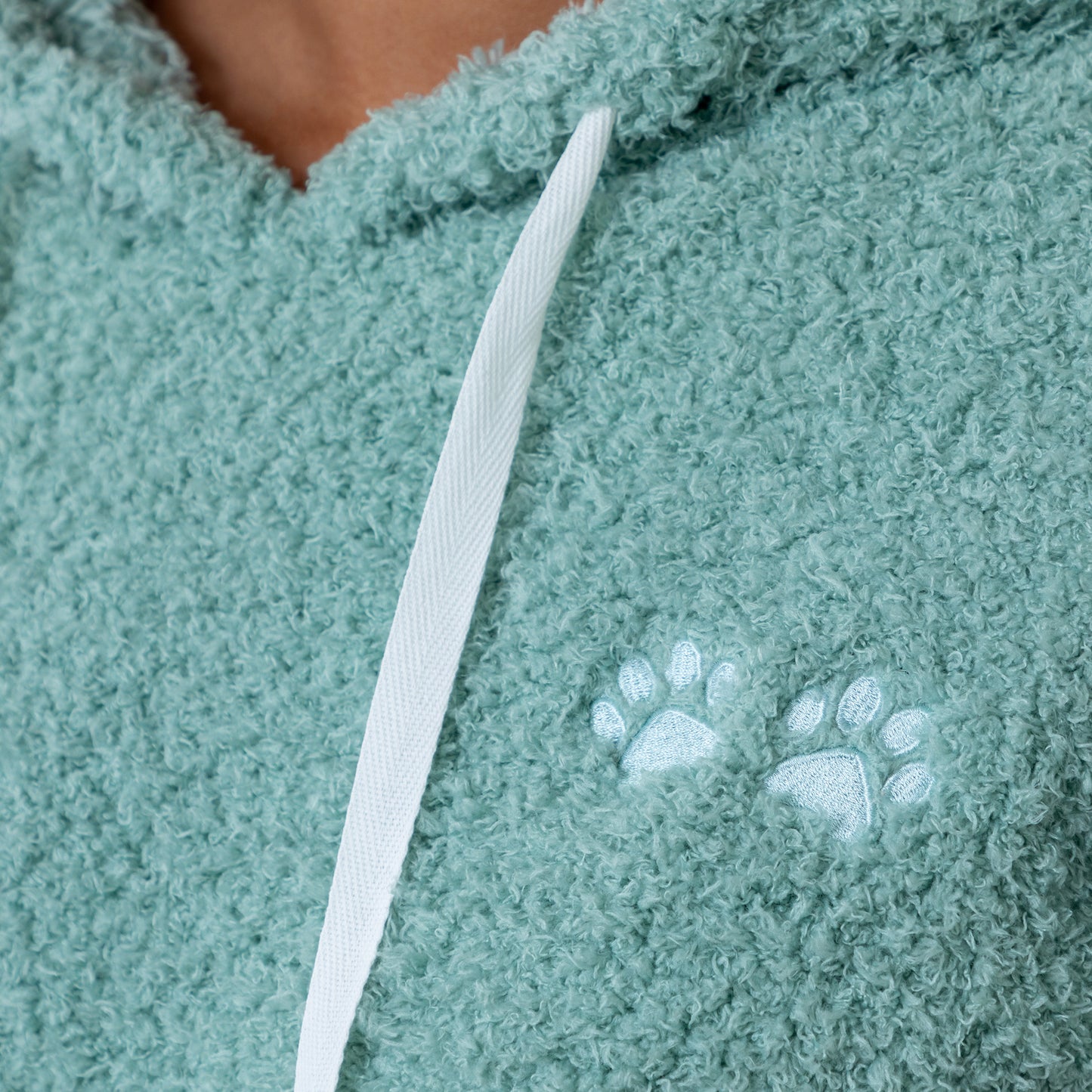 - Top: Hooded with drawstring, kangaroo pocket, embroidered paw prints on left chest