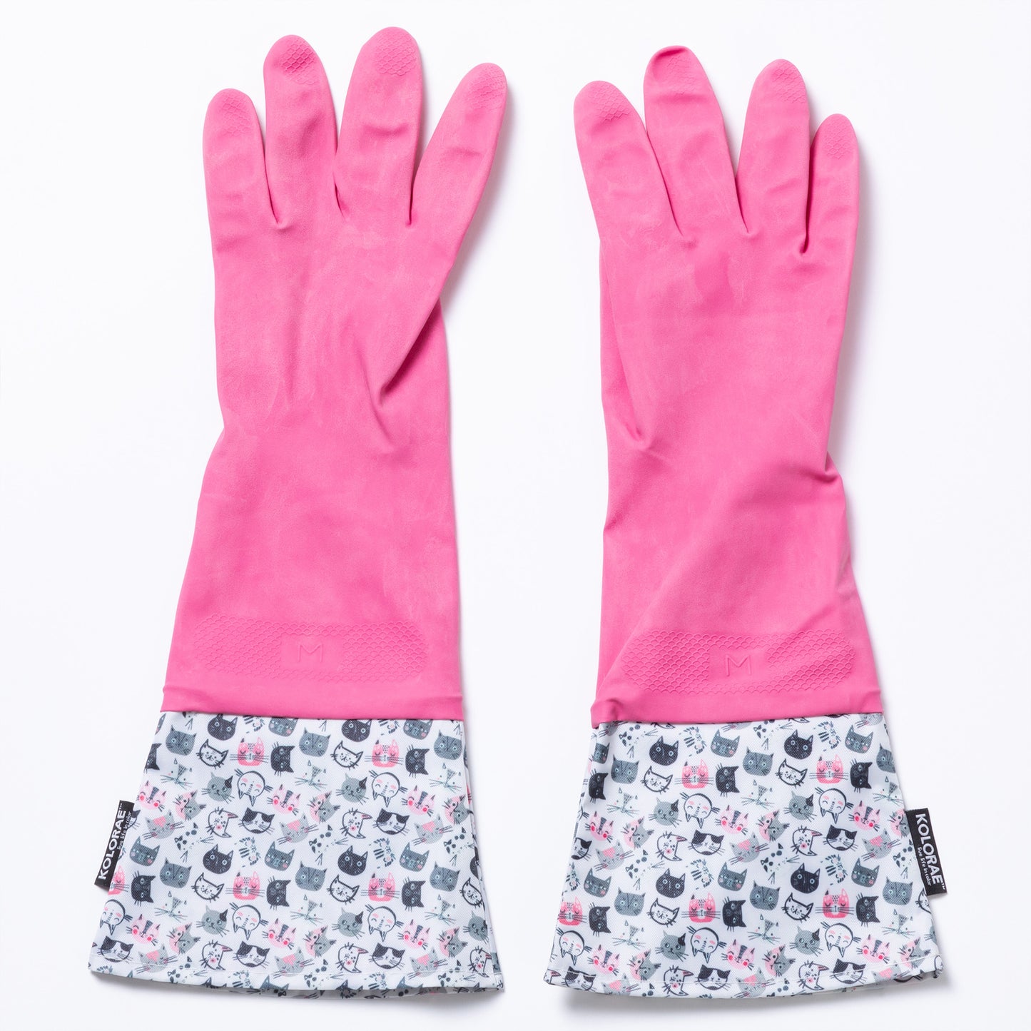 Make kitchen chores more fun with these adorable dish gloves! Crafted from durable pink latex, these gloves offer protection while adding a playful touch to your routine. The cuffs feature a charming pattern of cute cat faces, making them as stylish as they are practical. Perfect for cat lovers who want to add a dash of whimsy to their dishwashing duties!