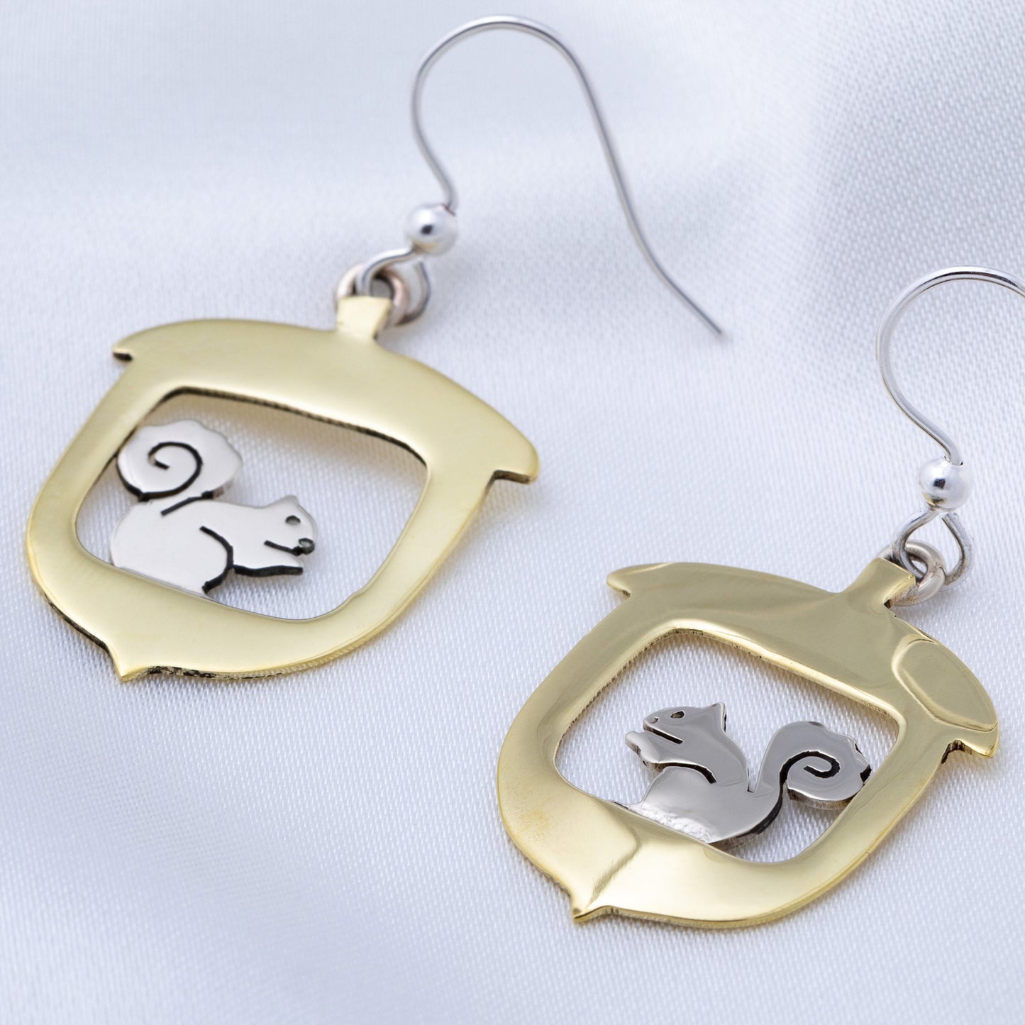 Capture the whimsical charm of nature with these delightful squirrel-acorn earrings! Handmade by skilled artisans in Mexico, each pair features a playful squirrel silhouette crafted from alpaca silver nestled within a golden brass acorn frame. The mixed-metal design highlights the intricate detailing and artistry of fair-trade craftsmanship, creating a unique accessory that brings a touch of woodland wonder to your style. Perfect for nature lovers and those who appreciate handcrafted elegance!
