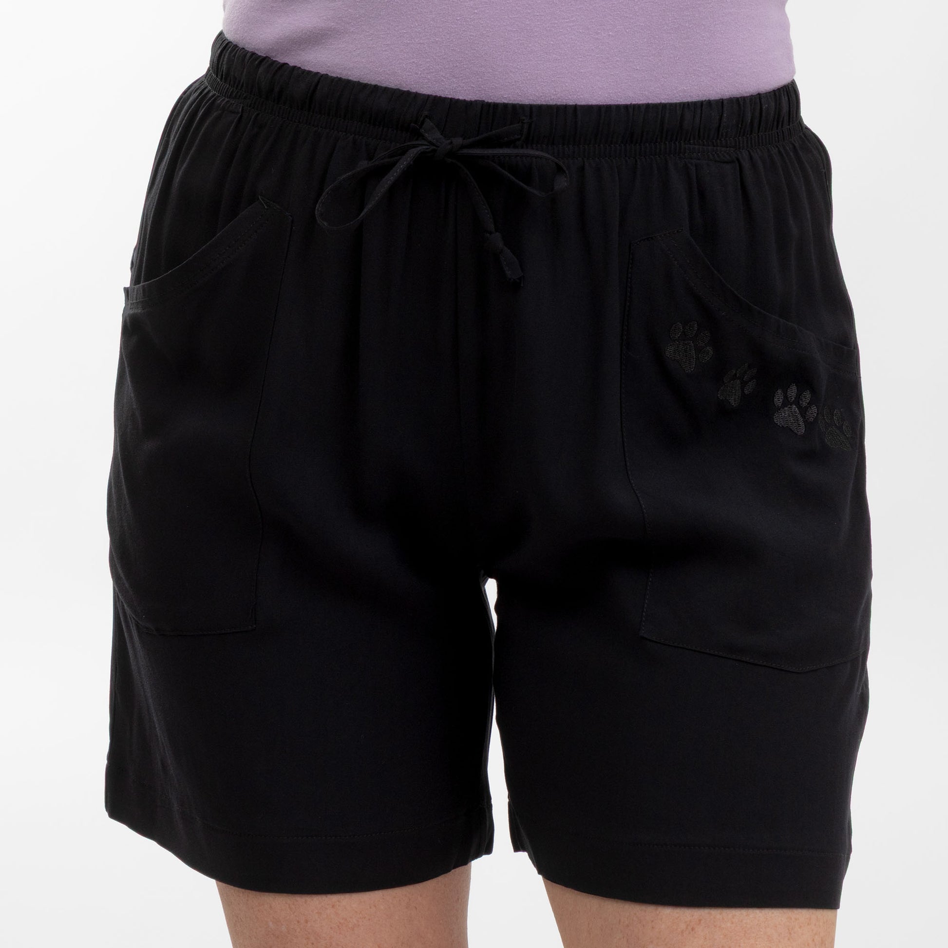 But what truly sets them apart? The intricate paw print embroidery. Delicately stitched, these embroidered details add a playful accent, elevating your everyday style. Plus, the big pockets are perfect for holding your essentials. Finally, shorts that are as functional as they are fashionable!