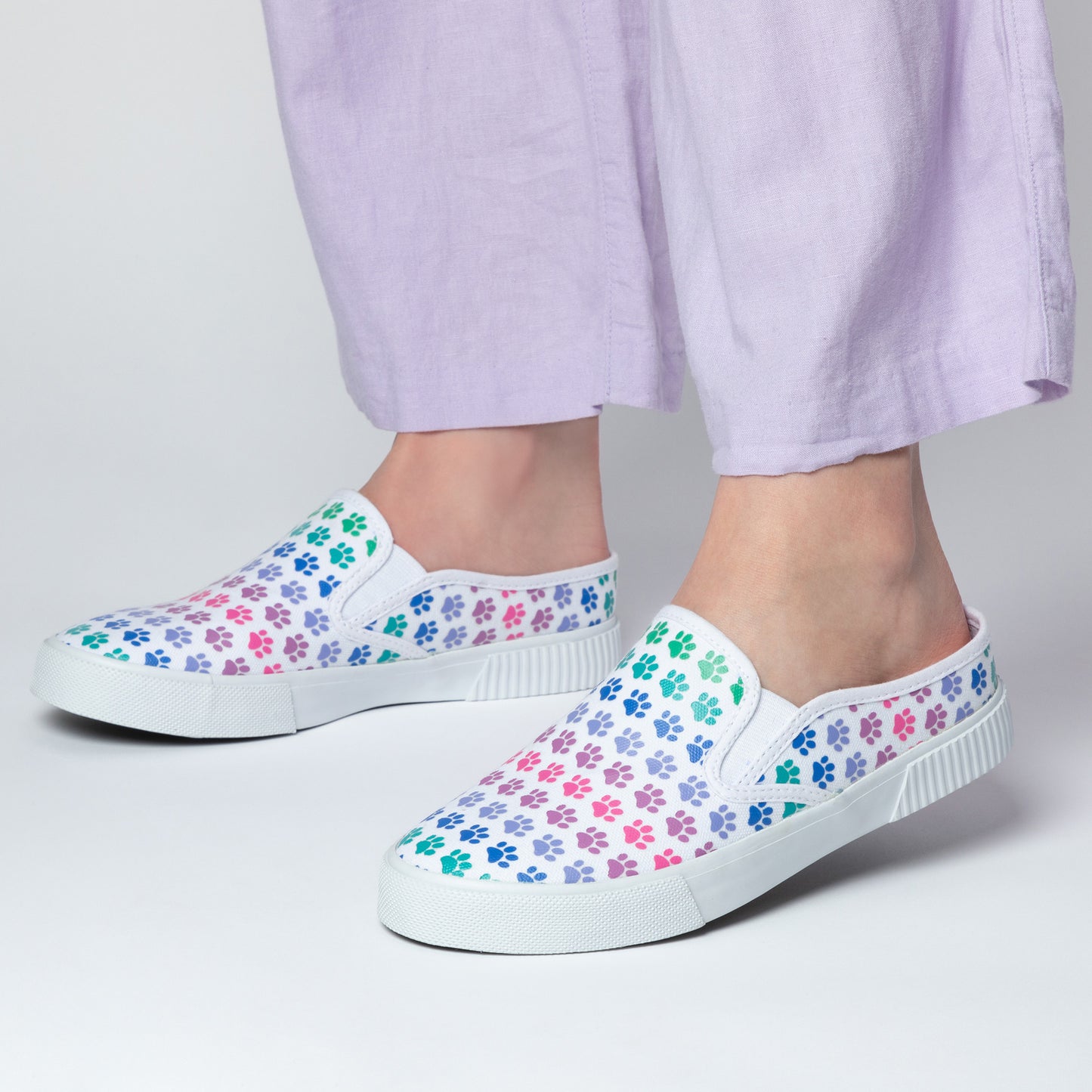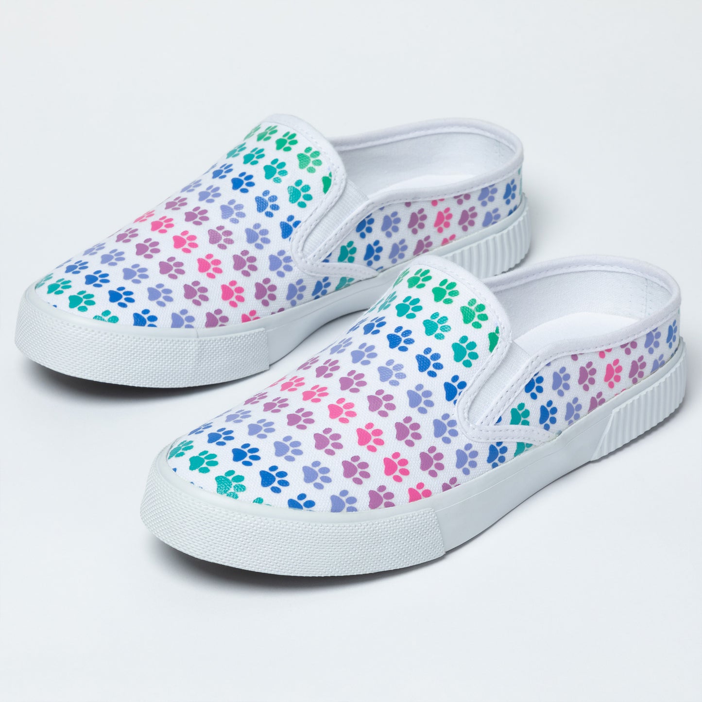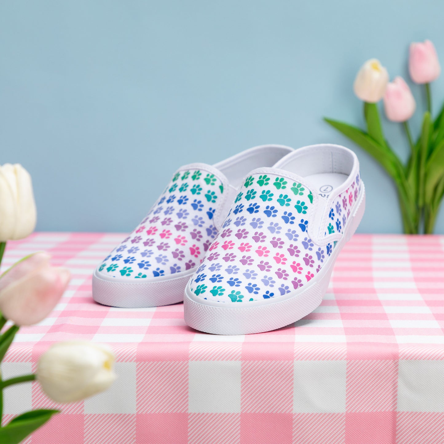These shoes effortlessly blend comfort, style, and a fun, playful touch. The vibrant, eye-catching unique paw print design adds a lively and casual flair to any outfit. Crafted from durable cotton canvas, their slip-on style makes them easy to wear, while the sole ensures a comfortable, cushioned fit. Whether you're out running errands or relaxing with friends, these shoes strike the perfect balance between practicality and personality.
