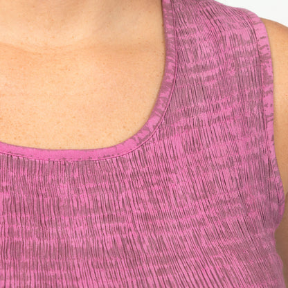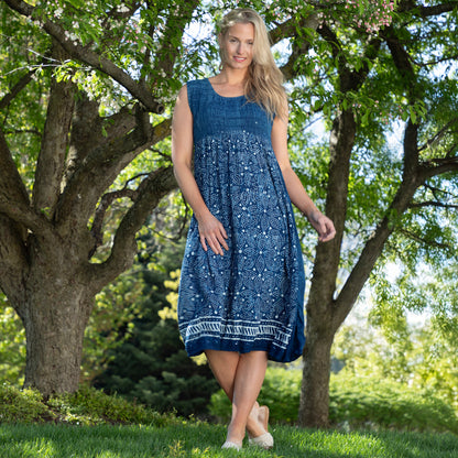 Rocking the mid-calf length, this dress is the perfect combo of chill and beautiful. The ruching adds flattering definition, hugging the bust with a soft texture and subtle detail. A hand printed tie-dye pattern brings a lively, eye-catching energy, while the sleeveless cut keeps the look fresh and breezy. Ideal for hot days or casual get-togethers, this dress effortlessly combines comfort, confidence, and bold style into one easy-to-wear piece.