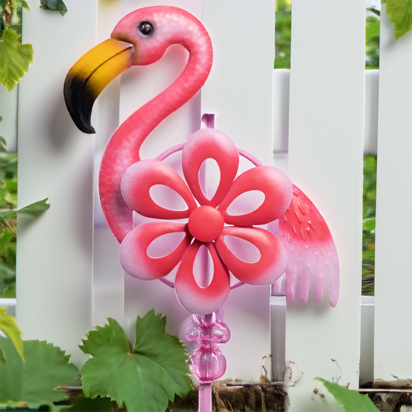 Add a splash of sass and sunshine to your garden with this fabulous flamingo! Standing tall and proud in her pink perfection, this garden stake brings retro charm and tropical vibes to any outdoor space. Whether she's soaking up the sun or strutting her stuff in the flower beds, she’s here to make your yard flamazing. Plus, she’s got a spinning flower that twirls with every breeze, adding even more fun and flair to your garden paradise!