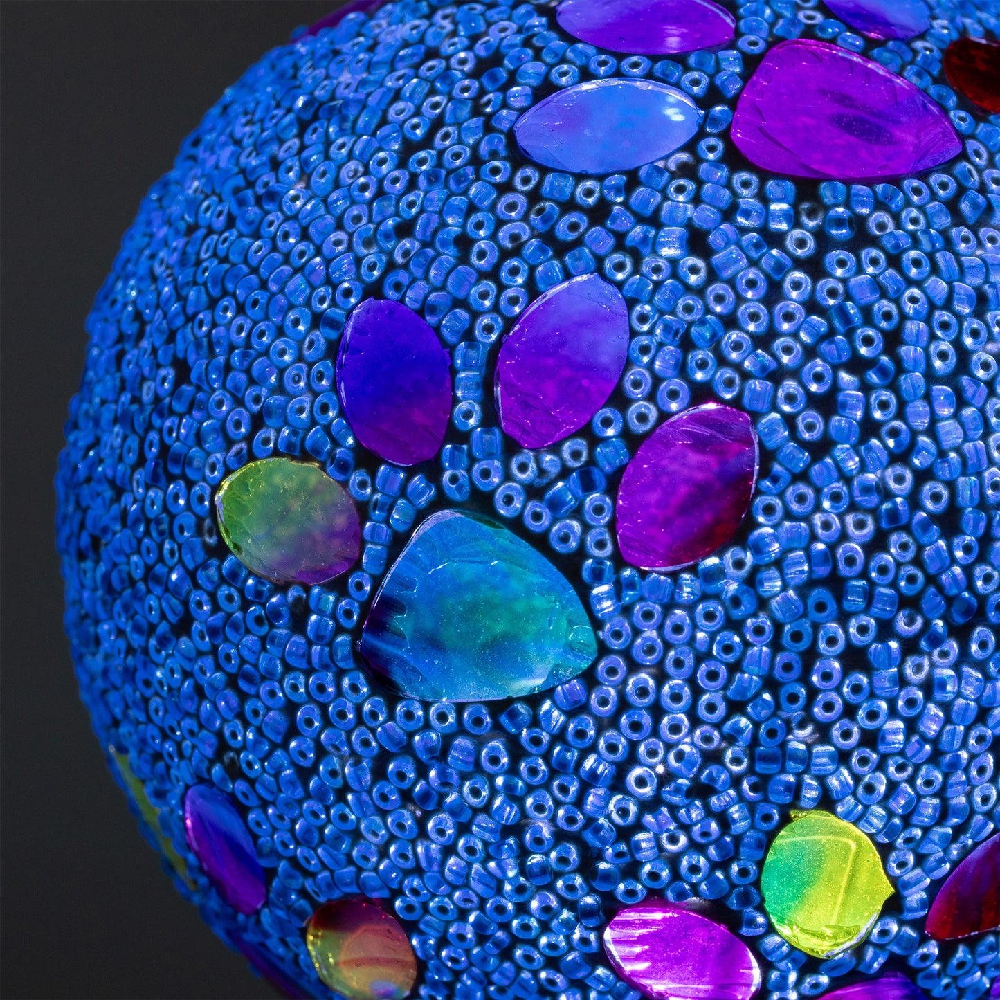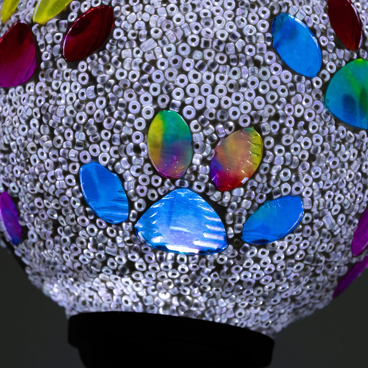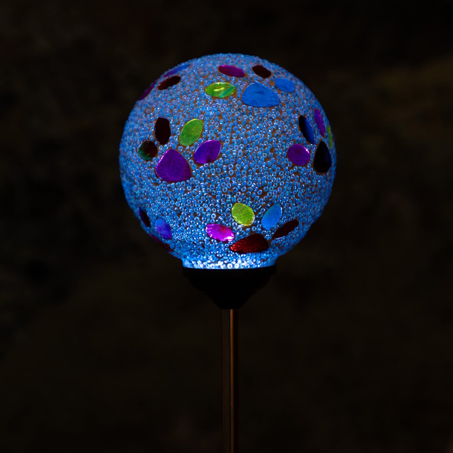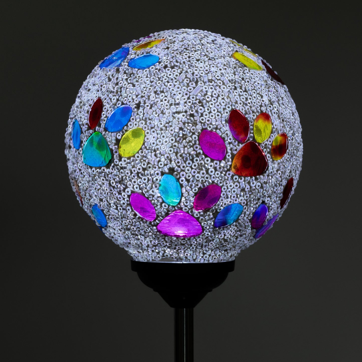 Bring a colorful glow to your garden with a solar-powered mosaic paw print garden stake! The beaded glass ball on top sparkles with multicolored paw prints, creating a playful and colorful display day or night. Powered by the sun, they add a charming, pet-loving touch to any outdoor space—no wiring needed!