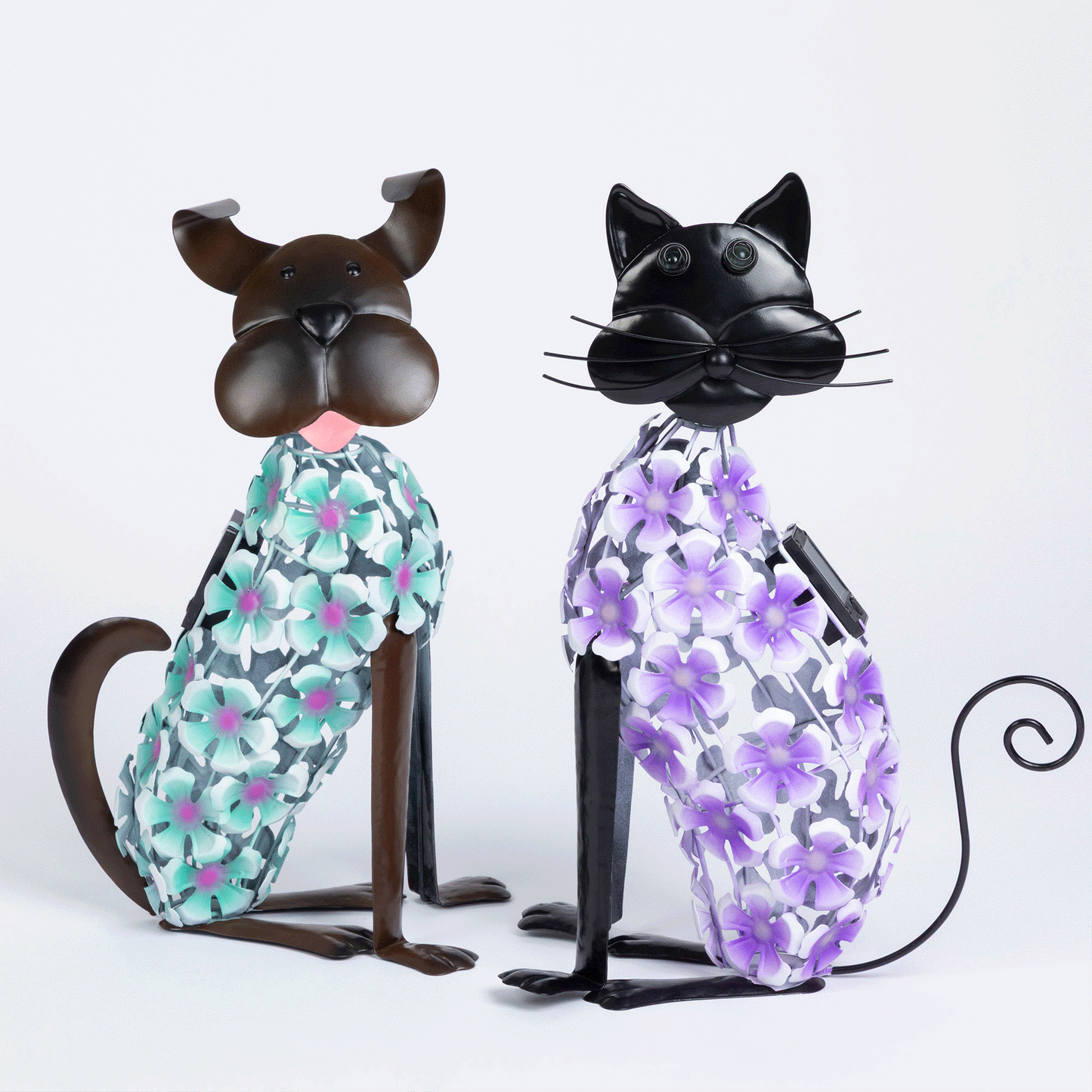 Add a playful glow to your garden with this charming solar pet statue. Featuring a dog or cat design adorned with colorful flowers, it lights up at night to create a cozy ambiance. Made from durable metal, it's the perfect blend of whimsy and functionality for your outdoor space.
