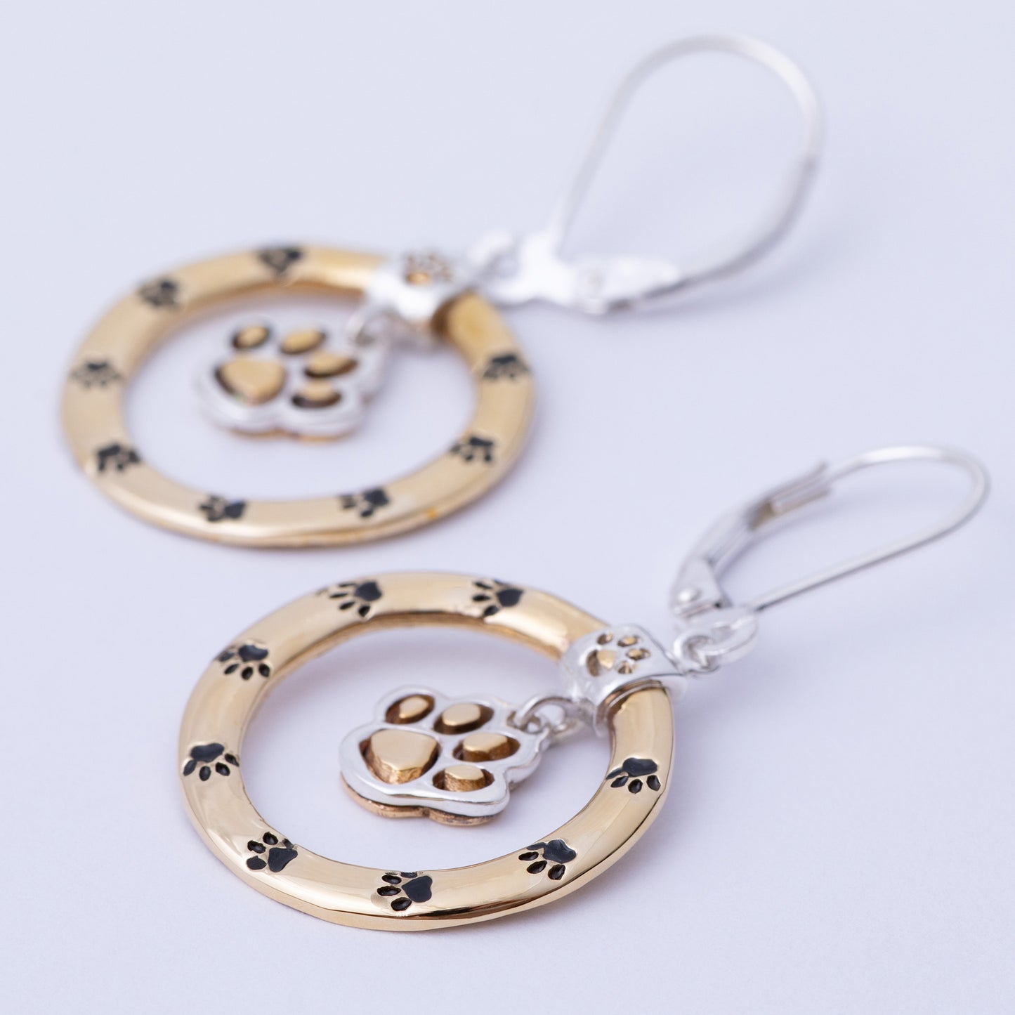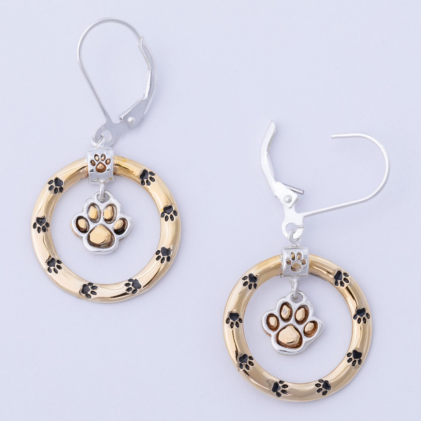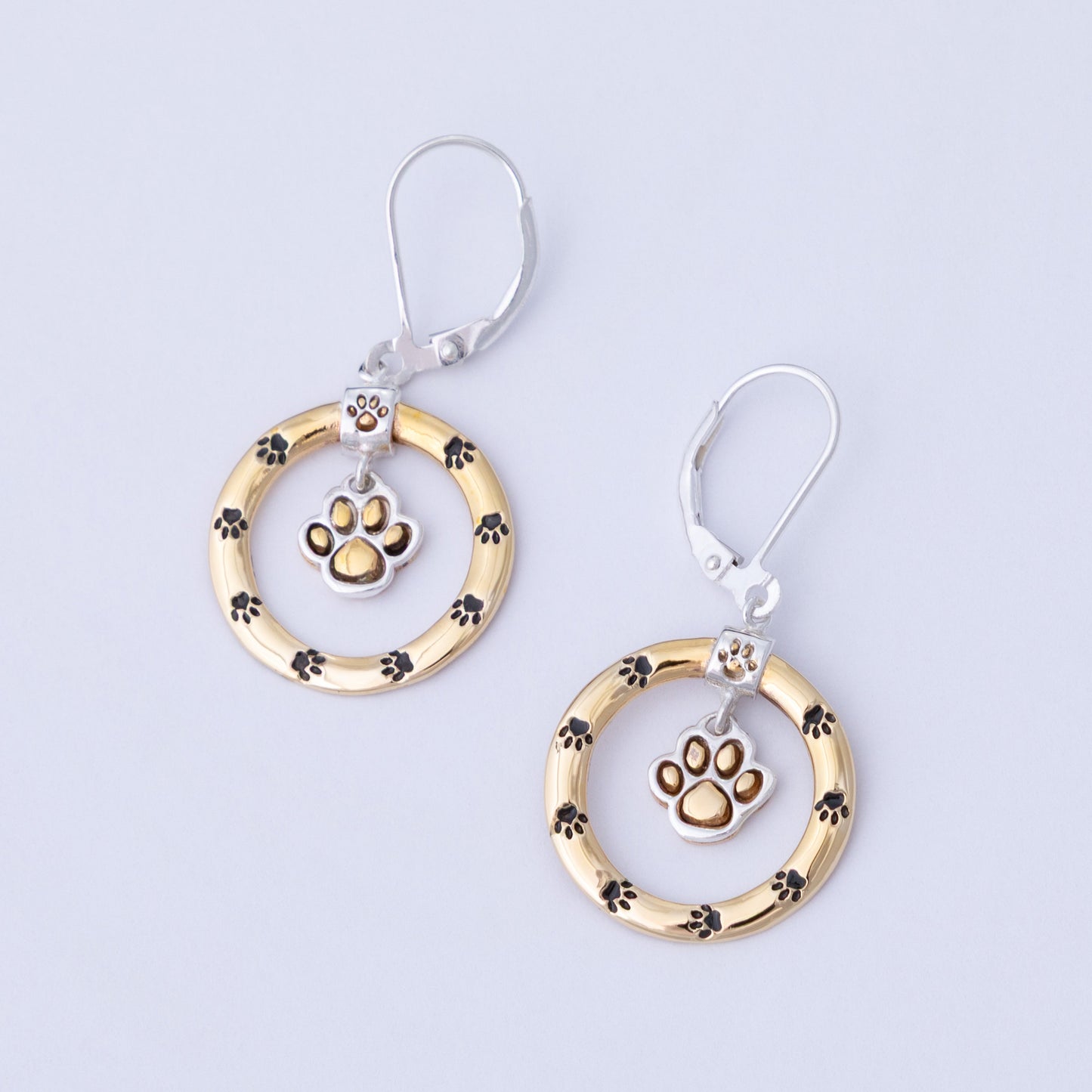Handcrafted by skilled artisans in Bolivia, these sterling silver and brass earrings feature a circular pendant with delicate dangling paw prints inside. The mixed-metal design creates a beautiful contrast, while the dangling elements add eye-catching movement. Fair trade and artisan-made, they’re a meaningful way to celebrate your love for animals with every wear.