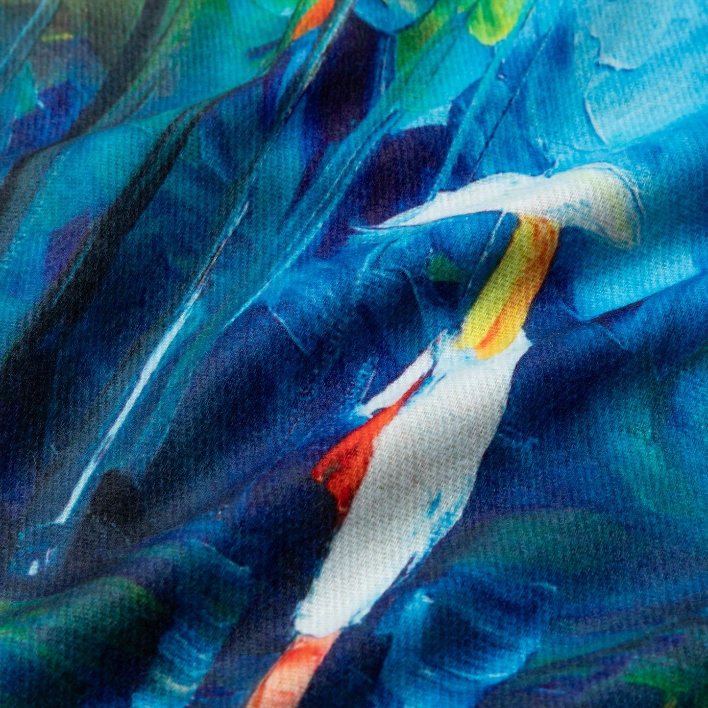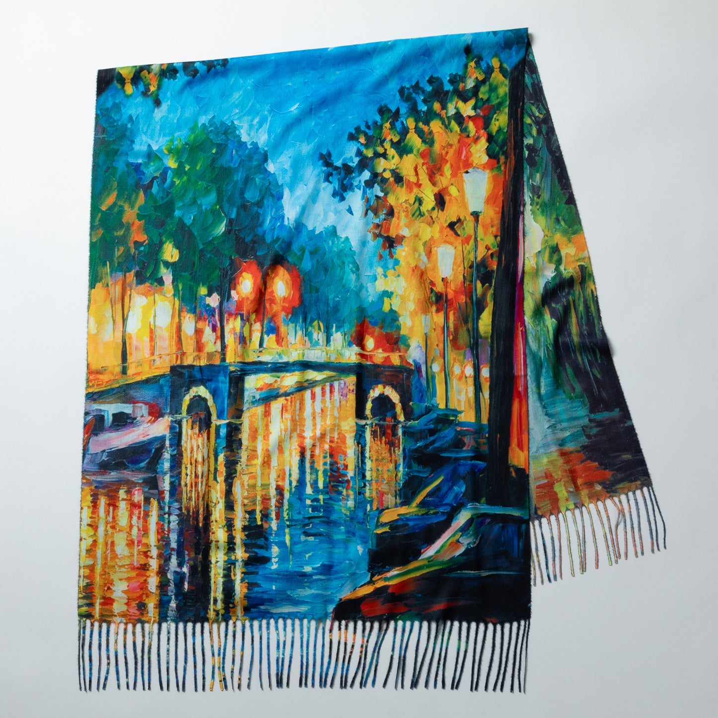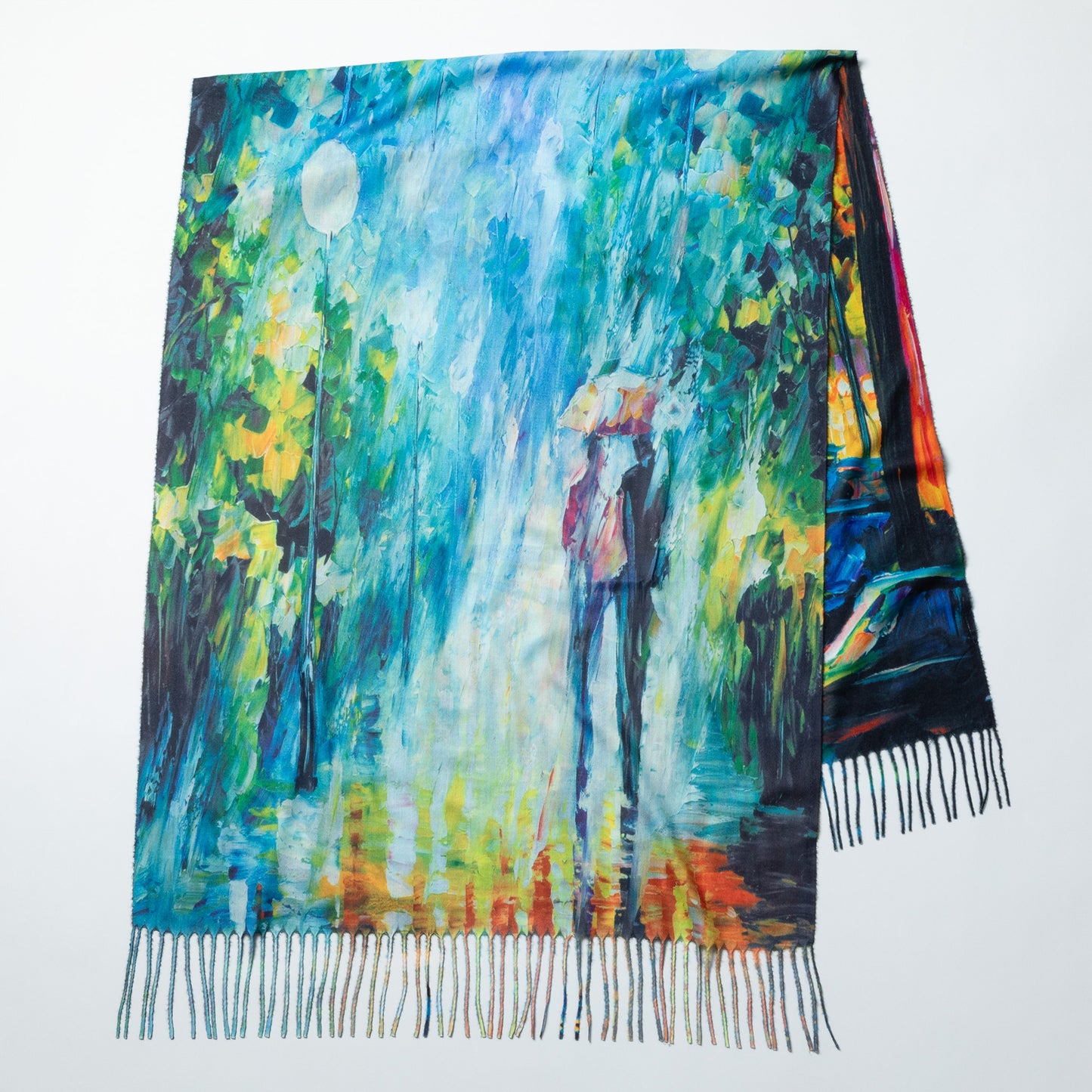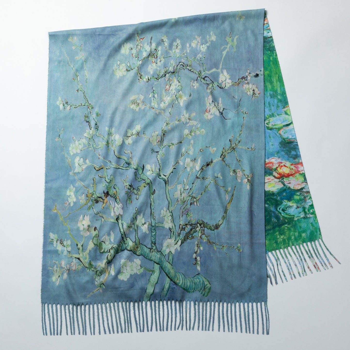 Featuring vibrant designs inspired by famous paintings, this gorgeous scarf is a wearable masterpiece. Made from soft, smooth polyester, it offers lightweight comfort while showcasing stunning artwork on both sides for a truly unique look. Finished with elegant fringe details, it’s perfect for adding a touch of sophistication to your look.