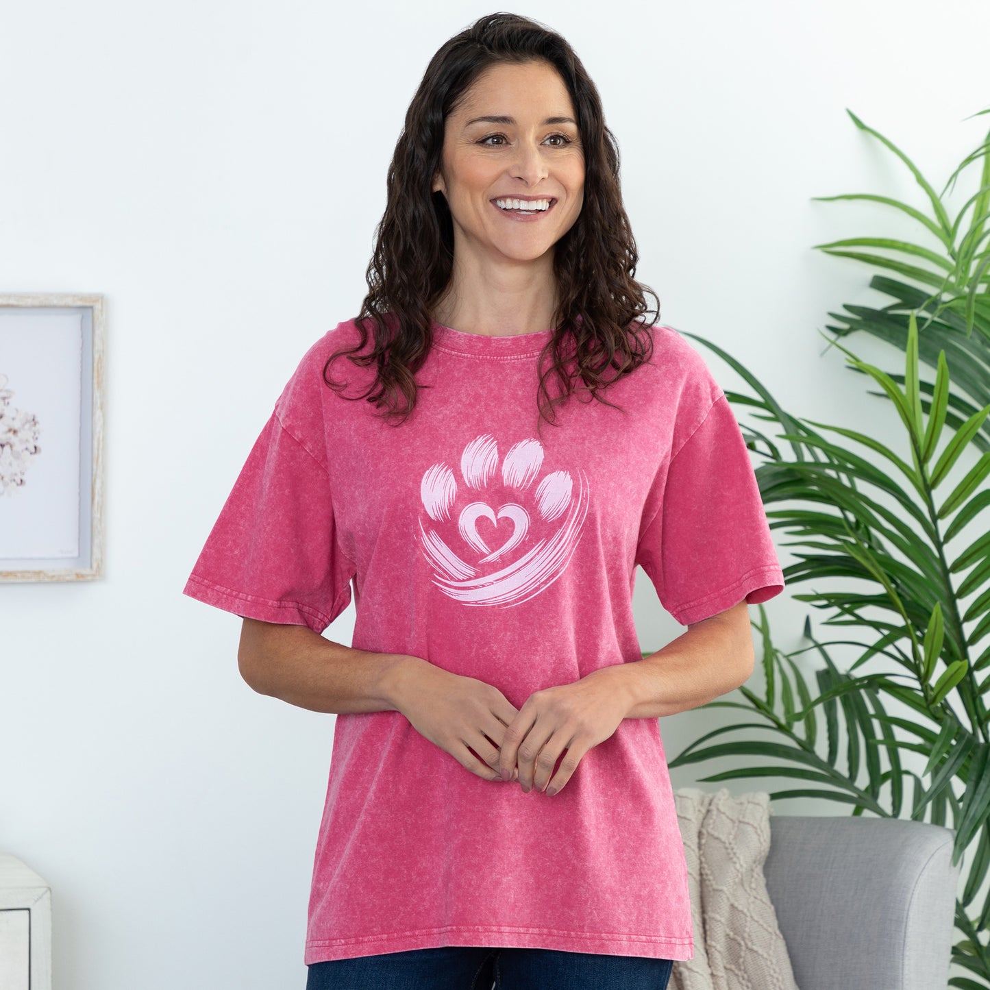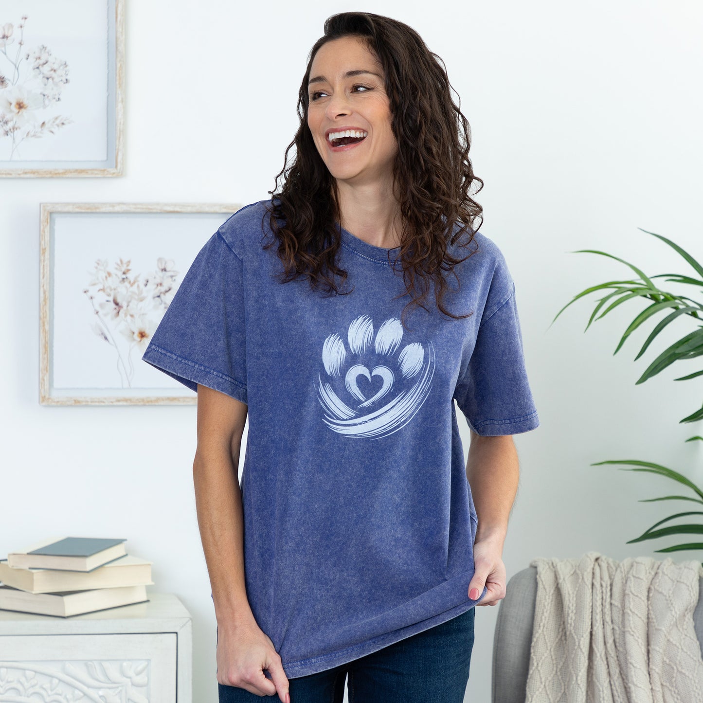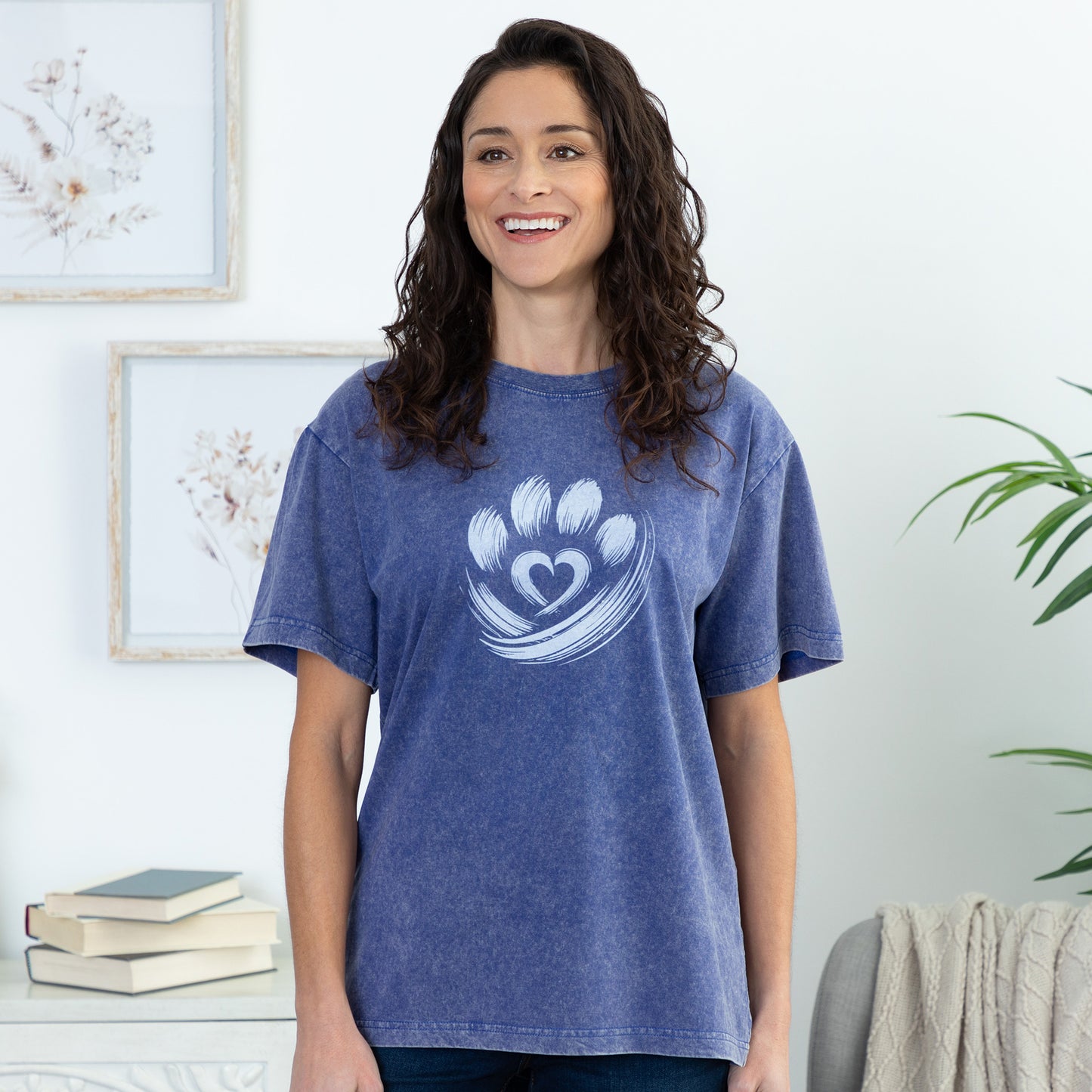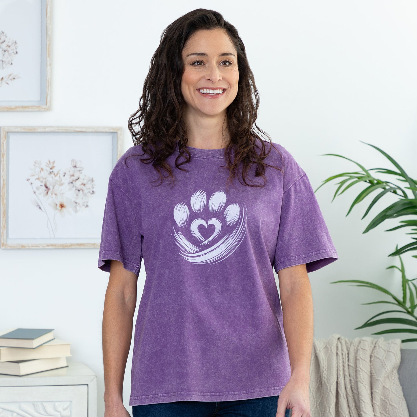 Embrace laid-back comfort with a touch of animal adoration in this mineral wash paw print tee. The vintage-inspired wash gives it a lived-in feel, while the bold paw print design makes a statement of compassion. Soft, breathable, 100% cotton, and effortlessly cool—it's the perfect go-to for casual days.