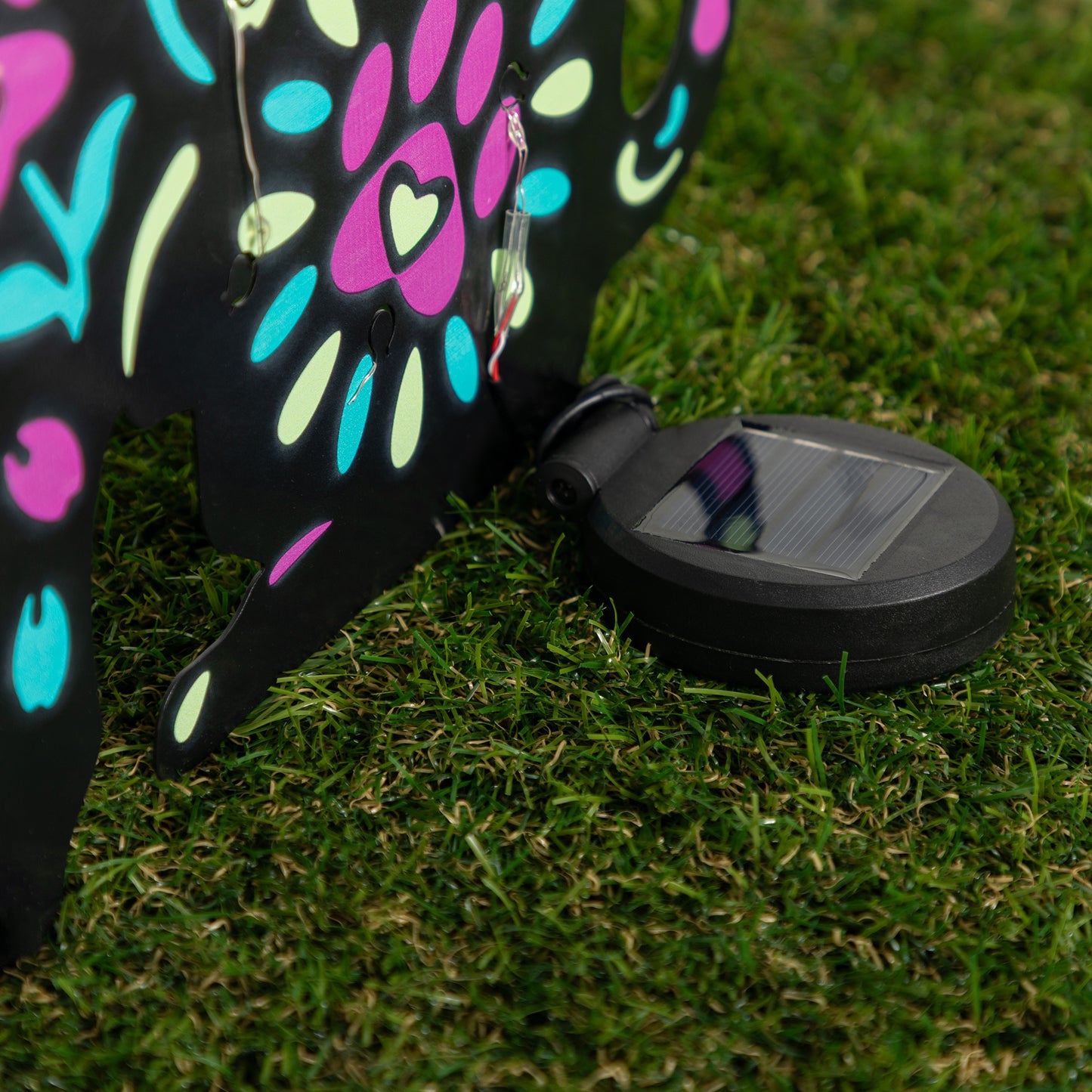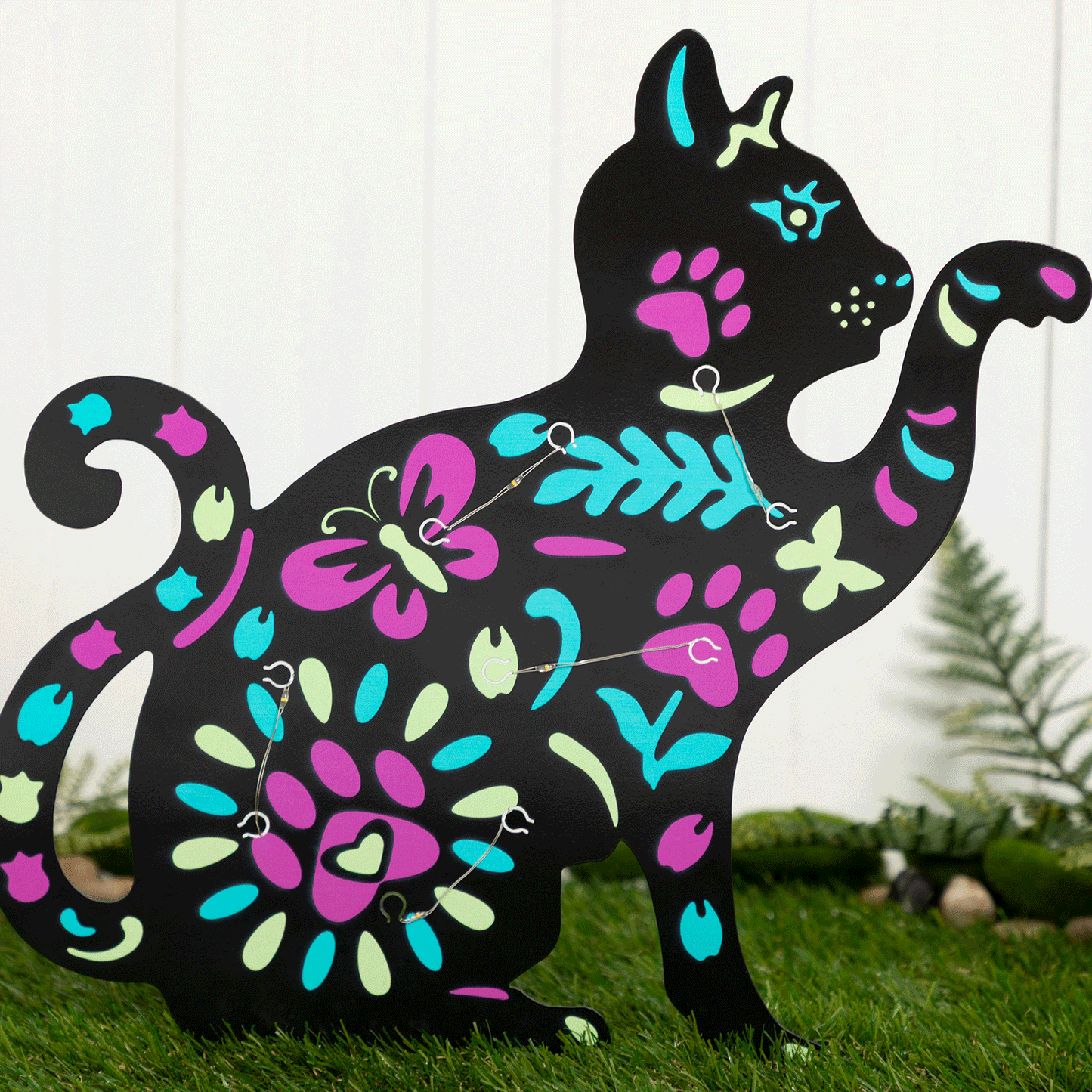 Brighten up your garden with these solar-powered pet silhouette garden stakes. Featuring colorful floral designs in the shape of a cat or dog, they soak up sunlight during the day and glow beautifully at night. A charming way to add personality and light to any outdoor space.