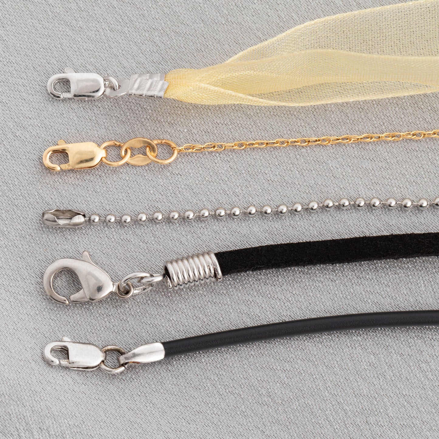 Elevate your jewelry game with an option from this collection of versatile chains designed to match your unique style. Whether you prefer the delicate shimmer of a gold-tone chain, the sleek edge of a silver ball chain, the classic elegance of velvet, or the airy charm of an organza ribbon, we have the perfect option for you. Mix, match, and layer to create a look that’s as bold or as subtle as you desire. Your necklace, your way!