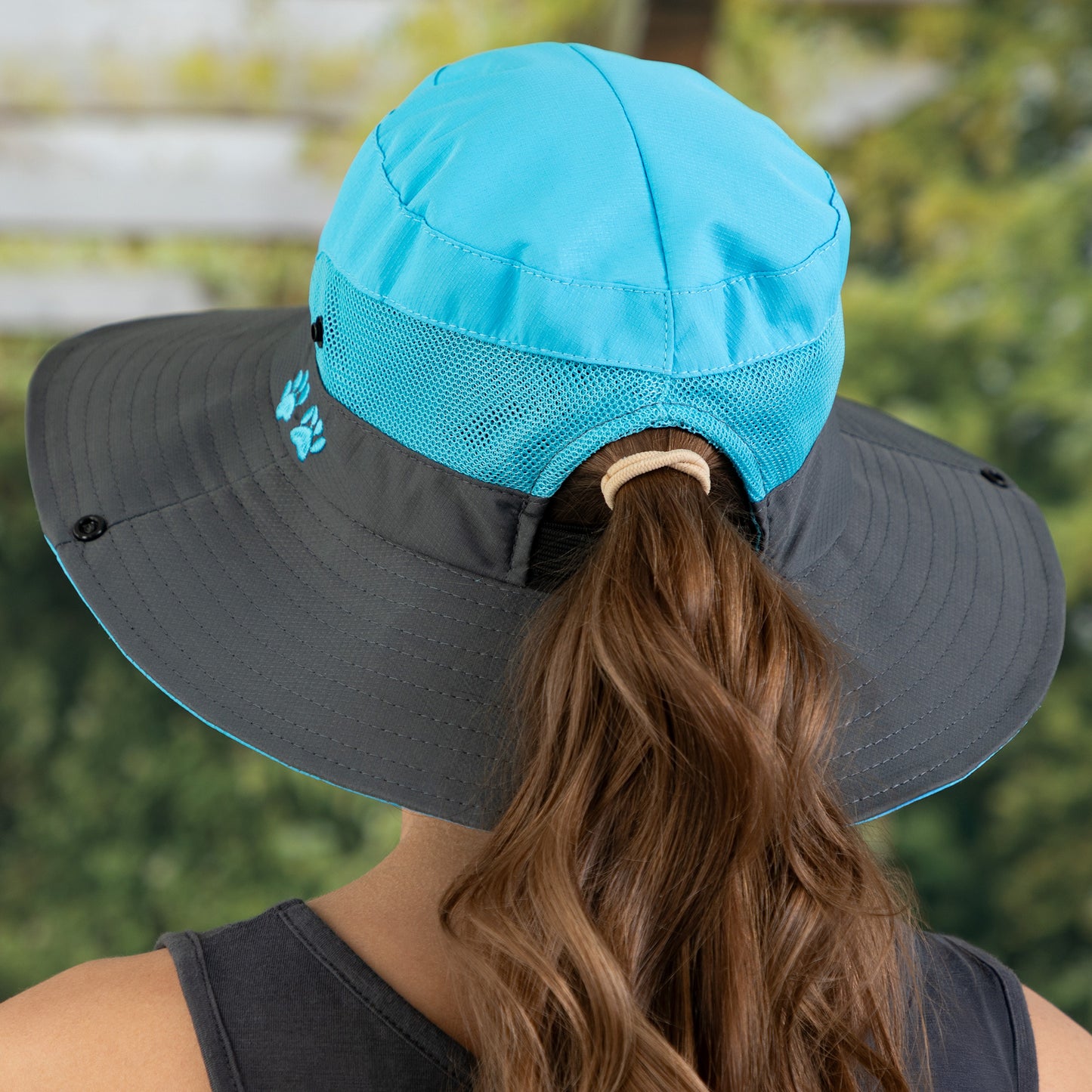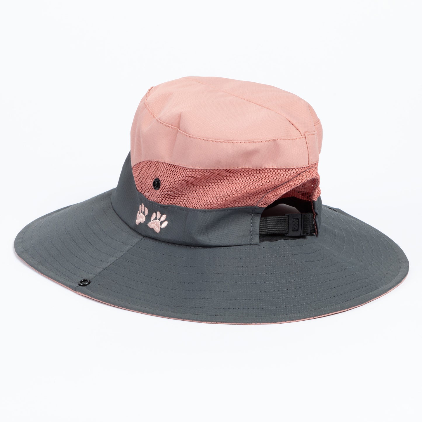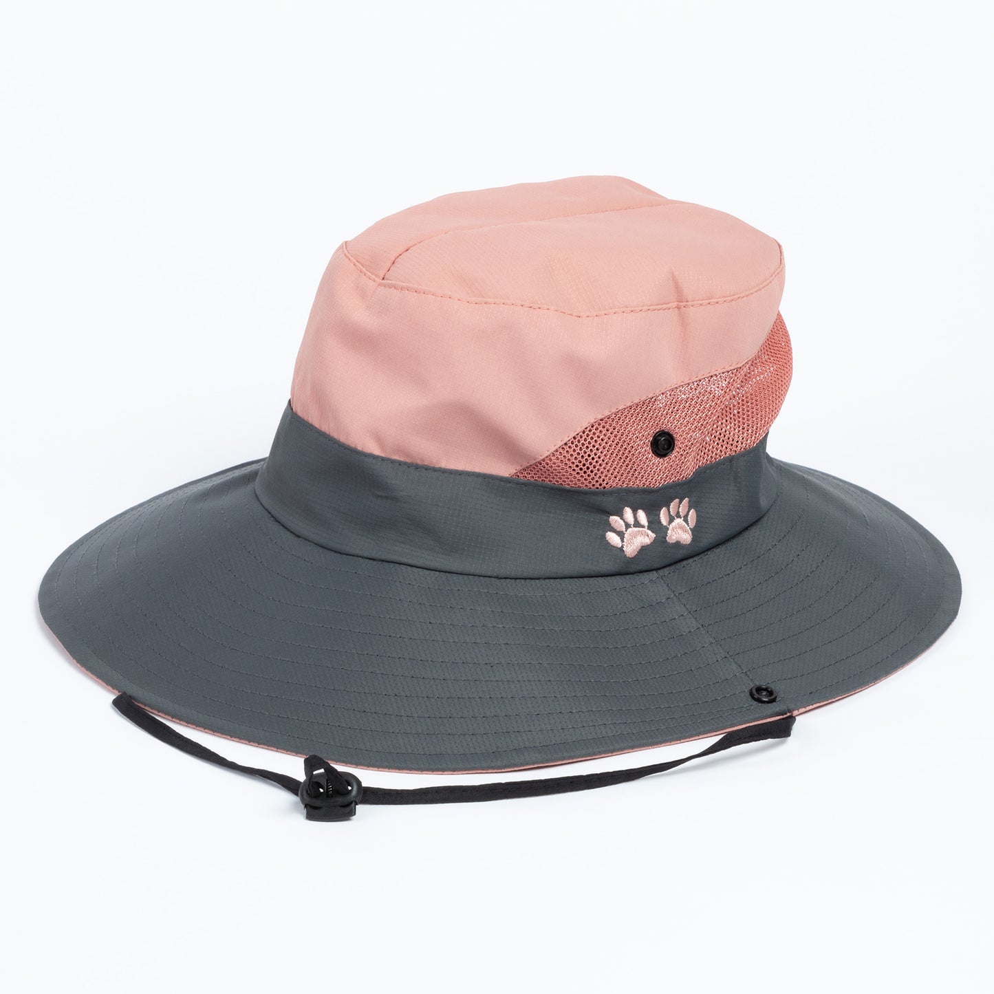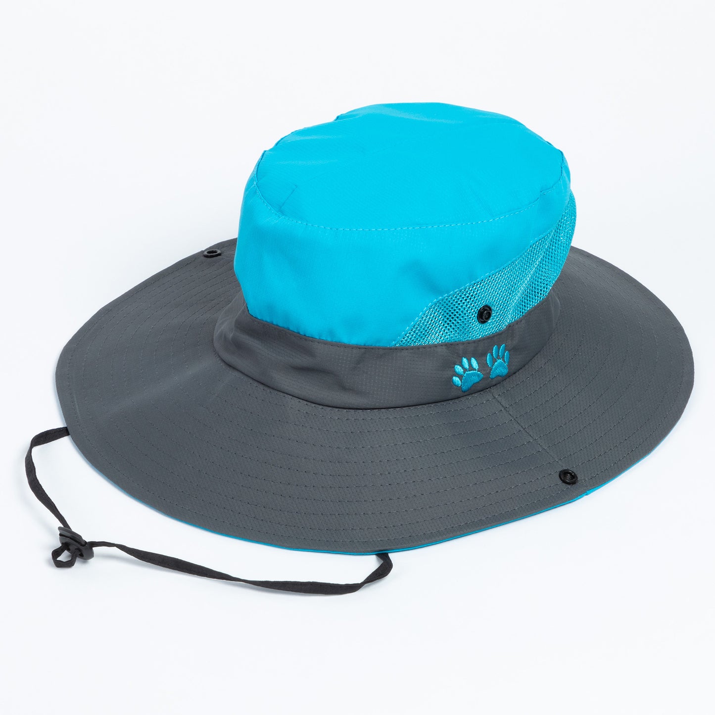 Stay cool and stylish with this breathable sun hat, featuring a custom two-paw embroidered detail on the side. Crafted from 100% lightweight polyester with built-in UPF 50+ protection, it offers all-day comfort and practical sun defense. A built-in ponytail hole and adjustable chin and back straps ensure a secure, personalized fit, while the washable fabric makes care a breeze. Whether you're hiking, gardening, or lounging by the water, this hat keeps you protected and effortlessly polished.