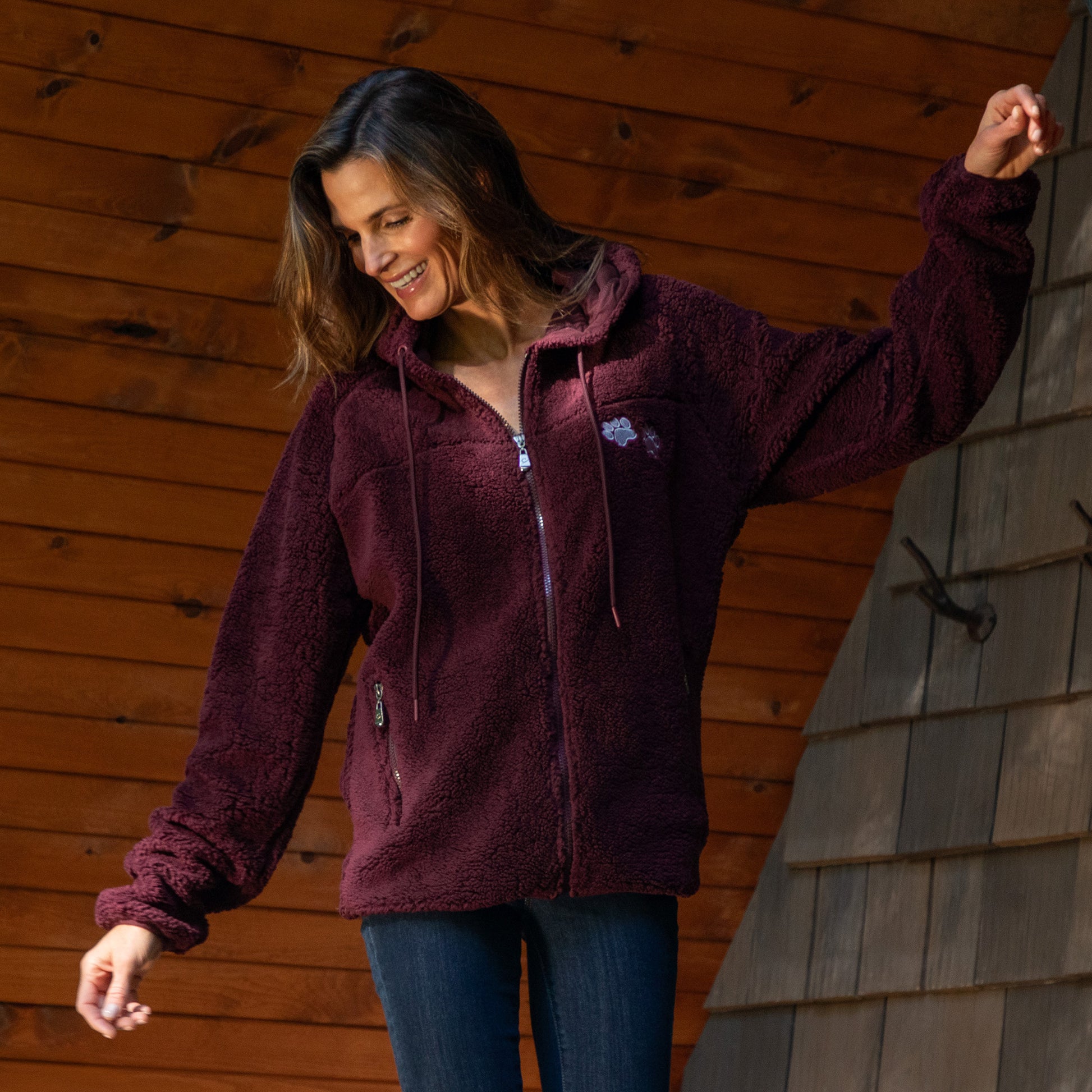 Cozy up in this cuddly sherpa zip-up hoodie, crafted with a roomy fit perfect for layering. The plush sherpa material delivers warmth, while two sweet embroidered paw prints on the left chest sprinkle in some pet-friendly fun. Featuring raglan sleeves and big pockets, it’s your ideal sidekick for cool, breezy days.