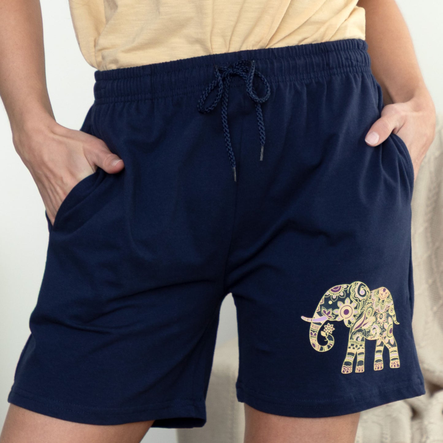 Enjoy effortless comfort with boho-inspired elephant print shorts! Made from 100% soft cotton, they feature a relaxed fit, an elastic drawstring waistband, and convenient side pockets for all-day ease. The beautifully detailed mandala elephant design on the left leg adds a touch of artistry and wanderlust to your casual wardrobe.