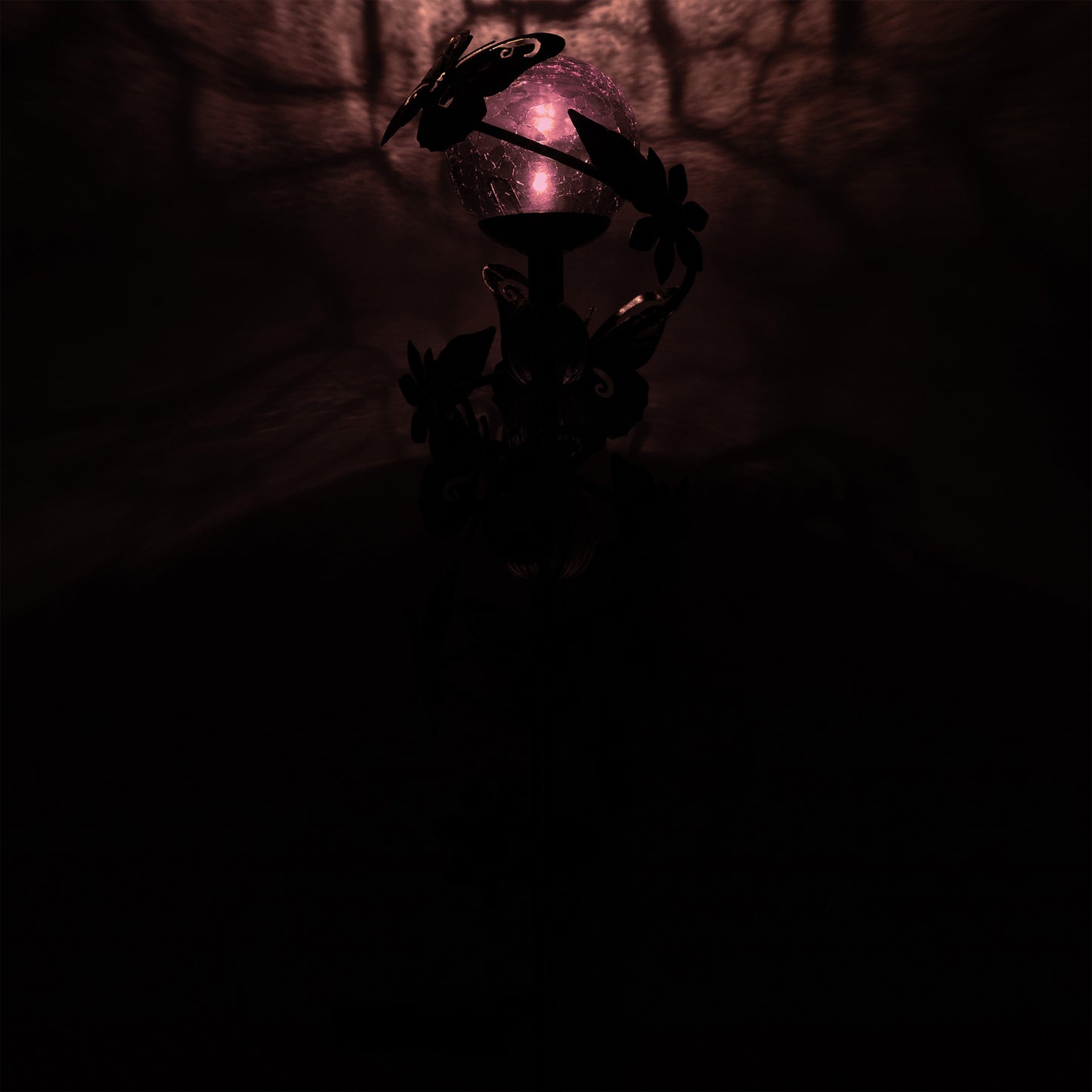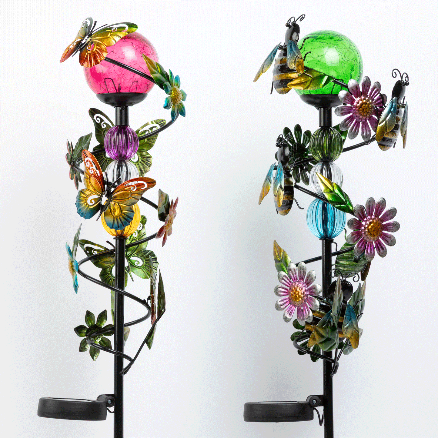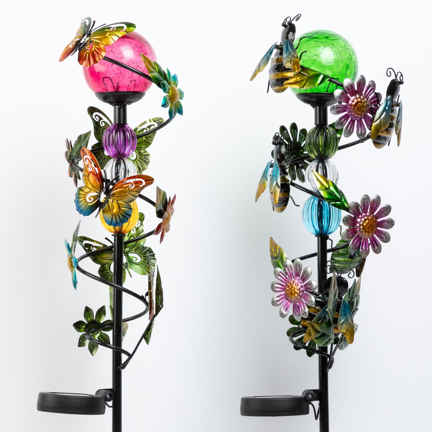 A glowing garden delight. Choose between charming bees or fluttering butterflies—each stake features cheerful garden friends perched among colorful blooms. By day, they add a playful pop of color; by night, built-in LED bulbs cast a gentle glow, creating a magical ambiance powered entirely by the sun. A sweet, shining touch for gardens, patios, walkways, or anywhere that could use a little extra cheer.