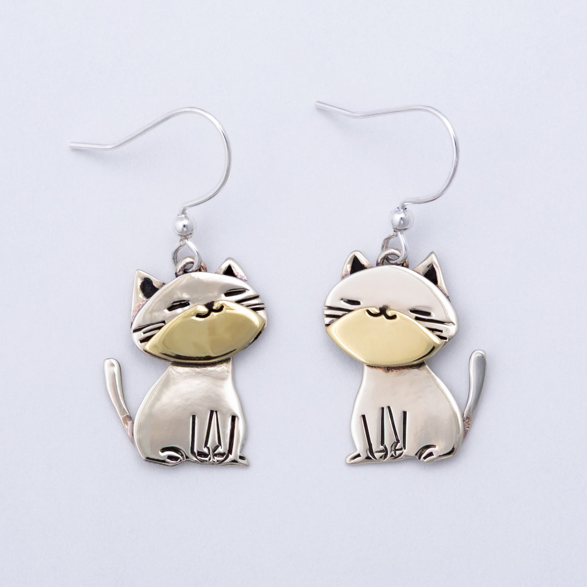 Bring a touch of feline charm to your look with these sweet little cat earrings, handcrafted in Mexico from alpaca silver and warm brass accents. Each fair trade pair is lovingly made by skilled artisans, blending playful design with timeless mixed-metal elegance. Lightweight and full of personality, they’re the perfect accessory for cat lovers who admire design!