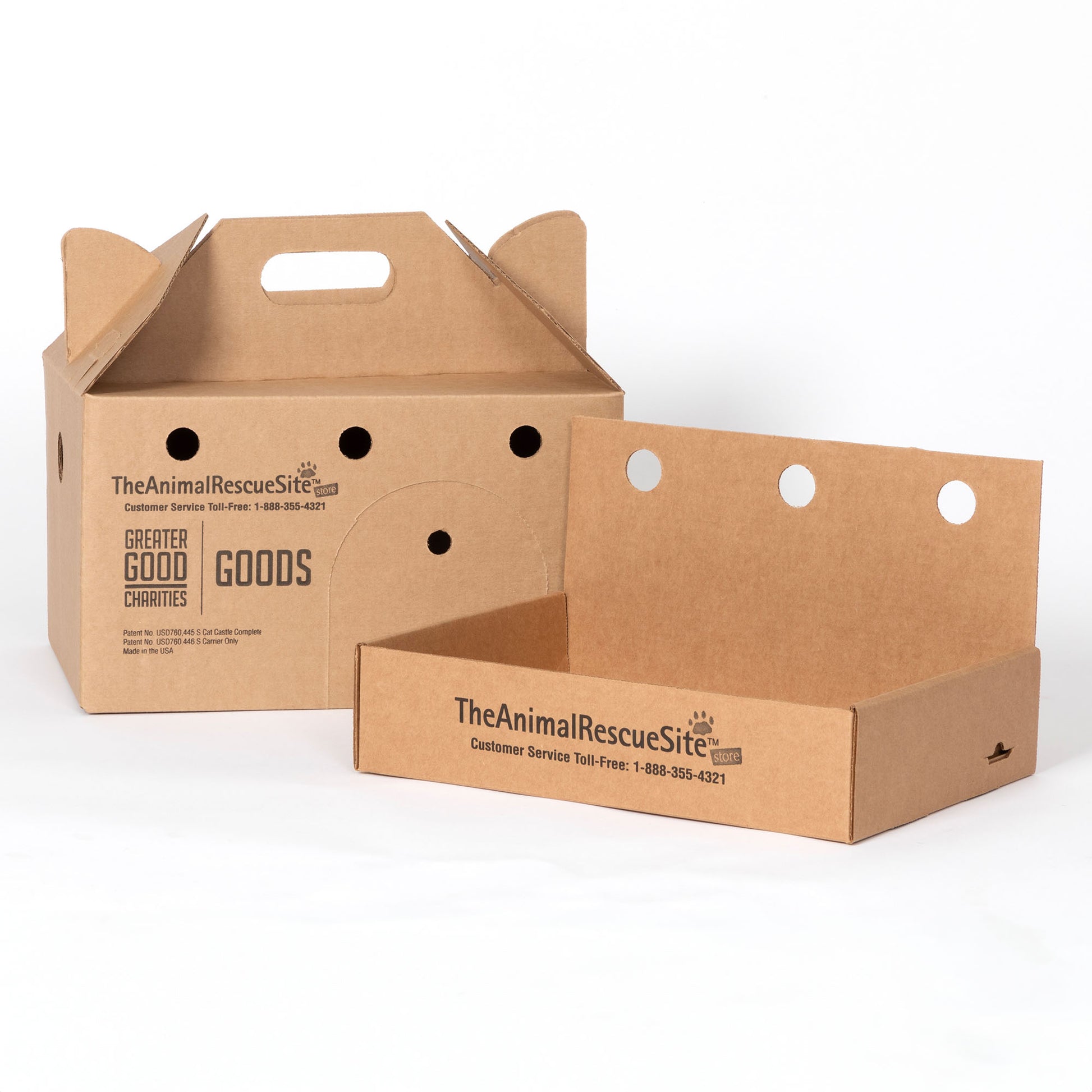 When these little kings and queens are adopted into a new family, the Cat Castle easily transforms into a secure cat carrier for transportation. The box can then be reassembled into the Castle format to provide a safe, familiar retreat that is already saturated with the cat's own scent, while the cat adjusts to their new setting peacefully. This is a much smoother transition than coming straight from the shelter with no familiar comfort.